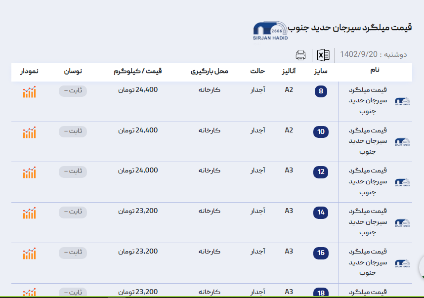 اعلام موجودی میلگرد ساده