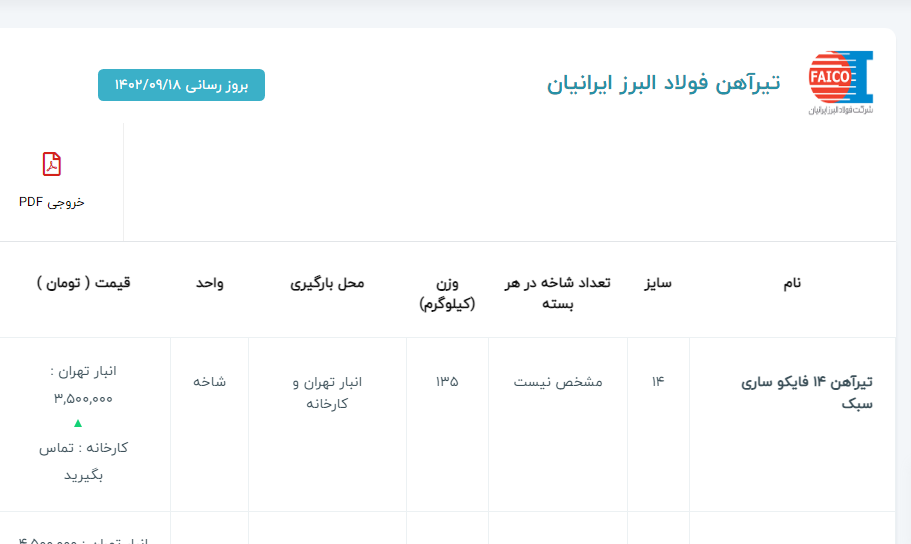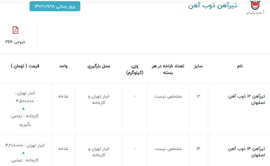 اعلام موجودی تیرآهن (IPE) در انبار دیجی آهن