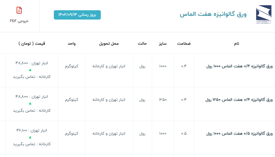موجودی ورق گالوانیزه 40 1000 40 1250 50 1000 50 1250 70 1000 1 1000 1.5 1250 @modiran_ahan_naghshjahan ☎️:03131328814 ☎️:03131328900 ☎️:09130950174