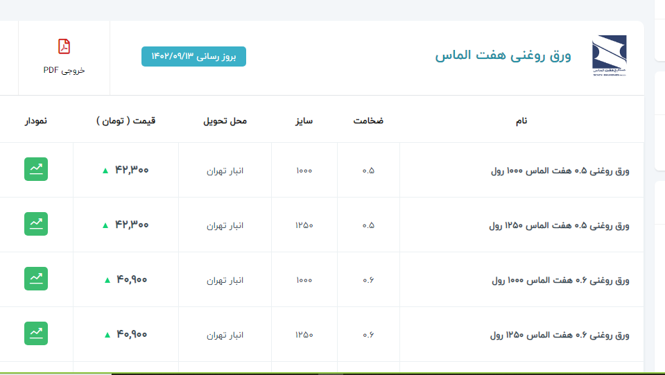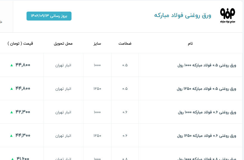 اعلام موجودی ورق گالوانیزه و رنگی