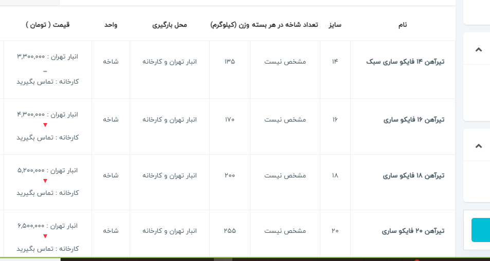 اعلام موجودی نبشی آهن یاب لیست کالای نبشی نورد آریان فولاد: 📅 دوشنبه : ۱۴۰۲/۹/۱۳ (افزایش قیمت) ♦️ نبشی ۵*۵ 💵 23100 تومان 📈 300 ♦️ نبشی ۶*۶ 💵 23100 تومان 📈 300 ♦️ نبشی ۷*۷ 💵 23100 تومان 📈 300 ♦️نبشی ۸*۸ 💵 23100 تومان 📈 300 ♦️نبشی ۱۰*۱۰ 💵23250 تومان 📈 300 ♦️نبشی ۱۲*۱۲ 💵23250 تومان 📈 300