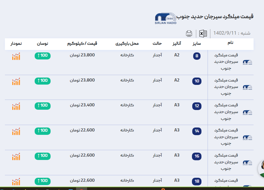 میلگرد آجدار 14 شاخه 12 متری A3 محل تحویل کارخانه میلگرد آجدار 16 شاخه 12 متری A3 محل تحویل کارخانه میلگرد آجدار 18 شاخه 12 متری A3 محل تحویل کارخانه میلگرد آجدار 20 شاخه 12 متری A3 محل تحویل کارخانه میلگرد آجدار 22 شاخه 12 متری A3محل تحویل کارخانه میلگرد آجدار 25 شاخه 12 متری A3 محل تحویل کارخانه میلگرد آجدار 28 شاخه 12 متری A3 محل تحویل کارخانه میلگرد آجدار 32 شاخه 12 متری A3 محل تحویل کارخانه جهت اطلاع از قیمت با شماره 03152467528 داخلی 100-103تماس بگیرید و یا از لینک تلگرام azinsepehralvand1@ ثبت سفارش کنید.