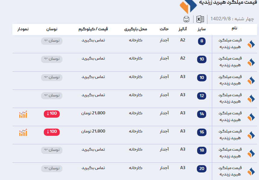 اعلام موجودی ورق گالوانیزه و رنگی