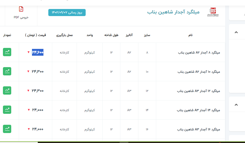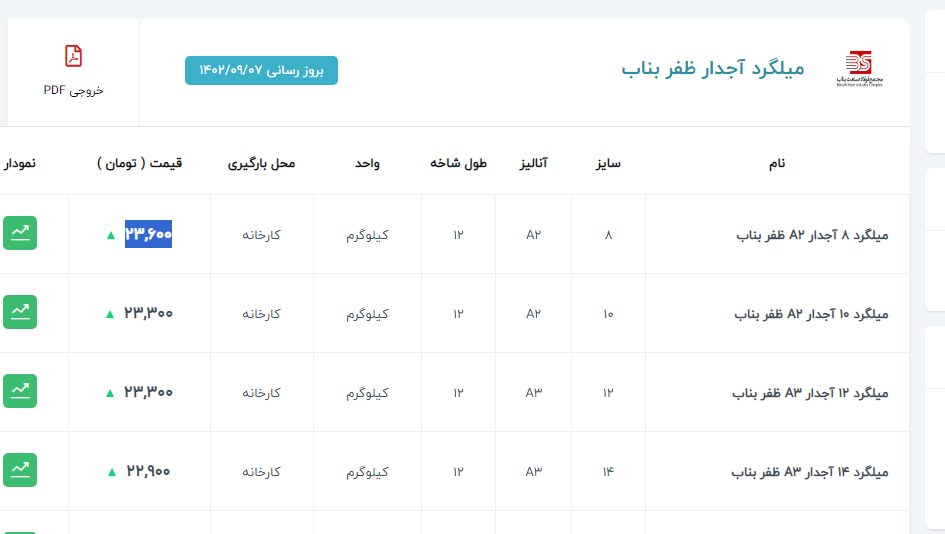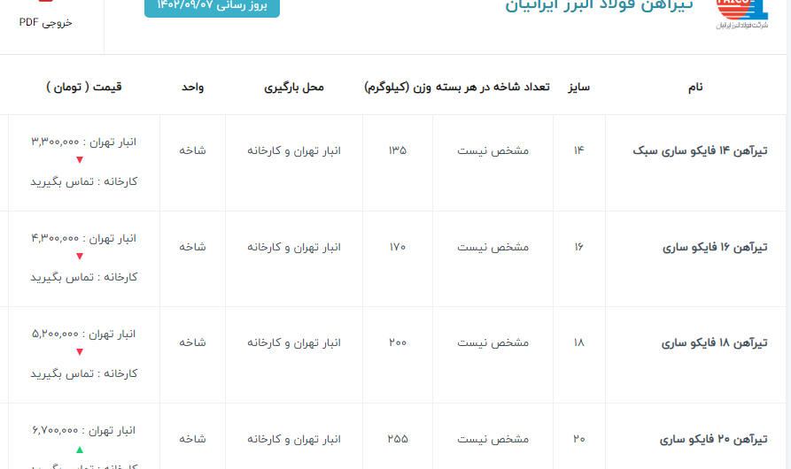 #رادین_پولاد_توسن_اسپادانا شرکت توسعه فولاد توسن سپاهان 🗓سه شنبه 07 آذر ماه 1402🗓 ⚜️#قیمت_تیر_ذوب تیرآهن شاخه ای12____39.500.000ریال تیرآهن شاخه ای14____39.300.000ریال تیرآهن شاخه ای 16____45.500.000ریال تیرآهن شاخه ای 18____54.000.000ریال تیرآهن شاخه ای 20____70.700.000ریال تیرآهن شاخه ای 22___80.500.000ریال تیرآهن شاخه ای 24___91.500.000ریال تیرآهن شاخه ای 27____107.500.000ریال تیرآهن شاخه ای 30____128.000.000ریال ⚜️#قیمت_میلگرد_ذوب میلگرد12_248.000ریال میلگرد14_234.000ریال میلگرد16_234.000ریال میلگرد18_235.000ریال میلگرد20_233.000 ریال میلگرد22_232.000ریال میلگرد25_232.000ریال میلگرد28_230.000ریال میلگرد32_230.000ریال ⚜️#قیمت_میلگرد_ظفر میلگرد8_244.000ریال میلگرد10_243.000ریال میلگرد12_243.000ریال میلگرد14_239.000ریال میلگرد16_239.000ریال میلگرد18_239.000ریال میلگرد20_239.000 ریال میلگرد22_239.000ریال میلگرد25_239.000ریال میلگرد28_239.000ریال میلگرد32_239.000ریال #جهت_مشاهده_پروفایل_رادین_پولاد_توسن_اسپادانا👇🏻 📌https://foolad24.com/profile/14665 #جهت_مشاهده_اعلام_موجودی_رادین_پولاد_توسن_اسپادانا👇🏻 https://foolad24.com/profile/14665/inventory شماره های تماس : 03134036 09925008927 09925008944 09925008932 09925008922 لینک های مرتبط با ما:🏻🏻 لینک وبسایت توسن فولاد (https://tosanfoolad.com/)لینک کانال توسن فولاد (https://t.me/tosan_foolad)لینک اینستاگرام توسن فولاد https://foolad24.com/dashboard/user/14665