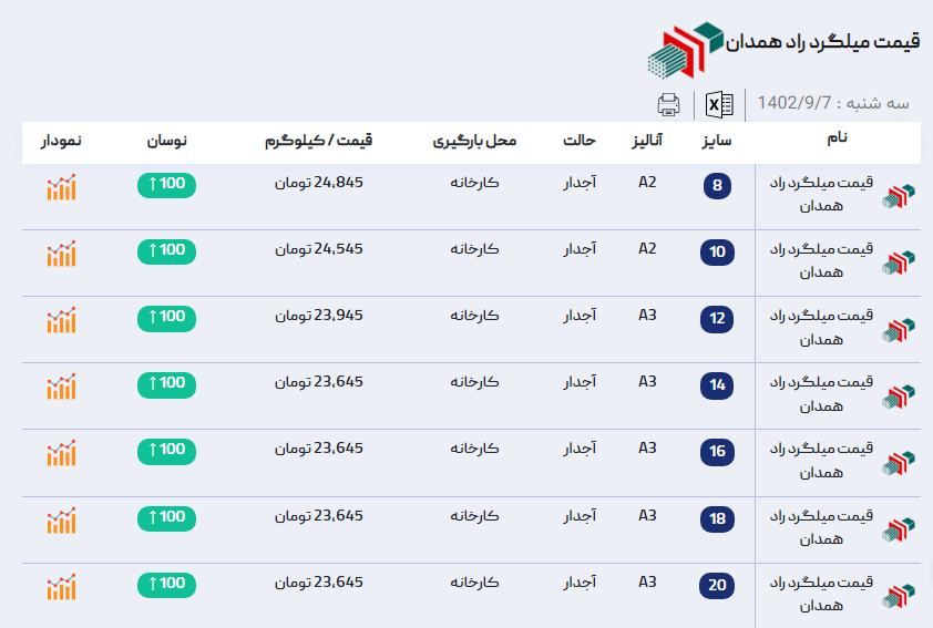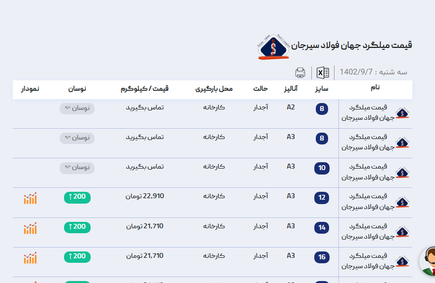 اعلام موجودی میلگرد آجدار