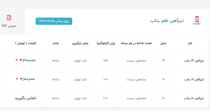 اعلام موجودی نبشی فولاد جاوید بناب " فولاد جاوید بناب " با سلام و عرض ادب *قیمت روز یکشنبه ۱۴۰۲/۰۹/۰۵ 🔹نبشی 40*3 سبک : ۲۵۰۰۰۰ ریال 🔹نبشی 40*3 : ۲۲۷۰۰۰ ریال 🔹نبشی 40*4 سبک : ۲۲۷۵۰۰ ریال 🔹نبشی 40*4 : ۲۲۷۰۰۰ ریال 🔹نبشی 50*3 سبک : ۲۵۰۰۰۰ ریال 🔹نبشی 50*3 : ۲۲۷۰۰۰ ریال 🔹نبشی 50*4 سبک : ۲۲۹۰۰۰ ریال 🔹نبشی 50*4 : ۲۲۷۰۰۰ ریال 🔹نبشی 50*5 سبک : ۲۲۸۵۰۰ ریال 🔹نبشی 50*5 : ۲۲۷۰۰۰ ریال 🔹نبشی 60*3 : ۲۴۵۰۰۰ ریال 🔹نبشی 60*4 : ۲۳۵۰۰۰ ریال 🔹نبشی 60*5 : ۲۲۷۰۰۰ ریال 041-37780433-6