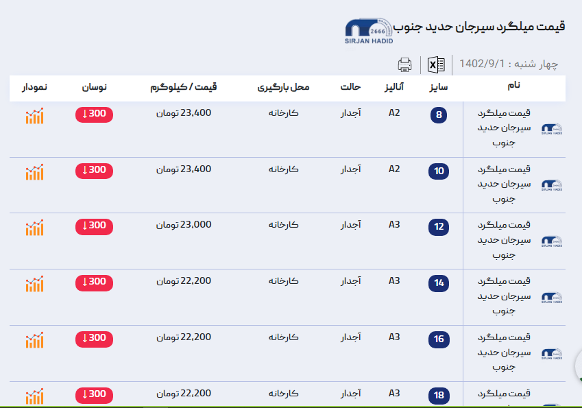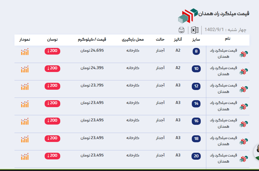 میلگرد آجدار 14 شاخه 12 متری A3 محل تحویل کارخانه میلگرد آجدار 16 شاخه 12 متری A3 محل تحویل کارخانه میلگرد آجدار 18 شاخه 12 متری A3 محل تحویل کارخانه میلگرد آجدار 20 شاخه 12 متری A3 محل تحویل کارخانه میلگرد آجدار 22 شاخه 12 متری A3محل تحویل کارخانه میلگرد آجدار 25 شاخه 12 متری A3 محل تحویل کارخانه میلگرد آجدار 28 شاخه 12 متری A3 محل تحویل کارخانه میلگرد آجدار 32 شاخه 12 متری A3 محل تحویل کارخانه جهت اطلاع از قیمت با شماره 03152467528 داخلی 100-103تماس بگیرید و یا از لینک تلگرام azinsepehralvand1@ ثبت سفارش کنید.