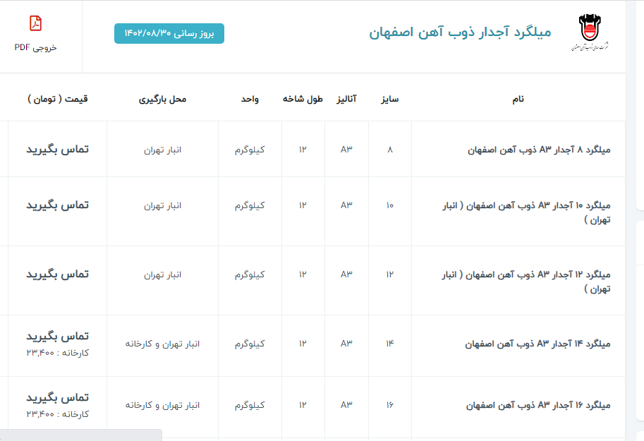 اعلام موجودی تیرآهن (IPE)