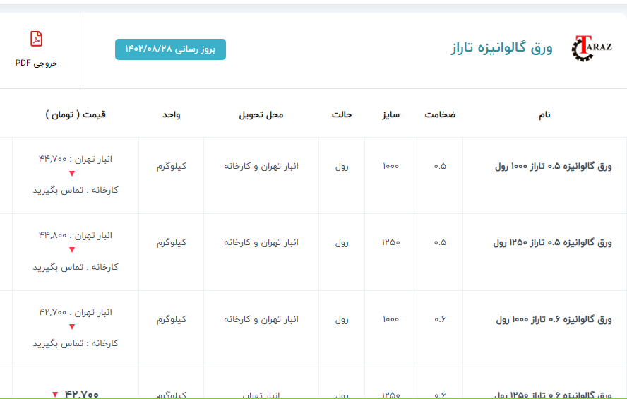 گیلان 2 میل 1060 2.5 میل 1060 3 میل 1060 انبار کارخانه