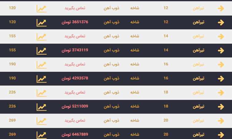 #قیمت #ناودانی #البرز_غرب_ابهر #کارخانه 🌎 سه شنبه 23 آبان ماه 1402 🌎 طول: 12متر ناودانی 8 ⏪ تماس بگیرید ناودانی 10 ⏪ 258000 ریال ناودانی 12 ⏪ 259000 ریال ناودانی 14 ⏪ 259000 ریال ناودانی 16 ⏪ 259000 ریال ناودانی 18 ⏪ 259000 ریال ✅تهران آهن خریدی امن,آسان,ارزان ✅کارشناس فروش : آقای قاجار 🔴 (https://tehran-ahan.com/) مشاهده قیمت ناودانی (https://tehran-ahan.com/product-category/channel/?utm_source=telegram&utm_medium=social&utm_campaign=channel) 🔴 (https://tehran-ahan.com/)⚙️برای مشاهده کامل جدول قیمت ناودانی می توانید به سایت تهران آهن مراجعه کنید: ✅(50 خط ویژه): ☎️021-86073000 📱 instagram.com/tehran.ahan 🌏 https://b2n.ir/r38781 🔗 t.me/Tehran_ahan
