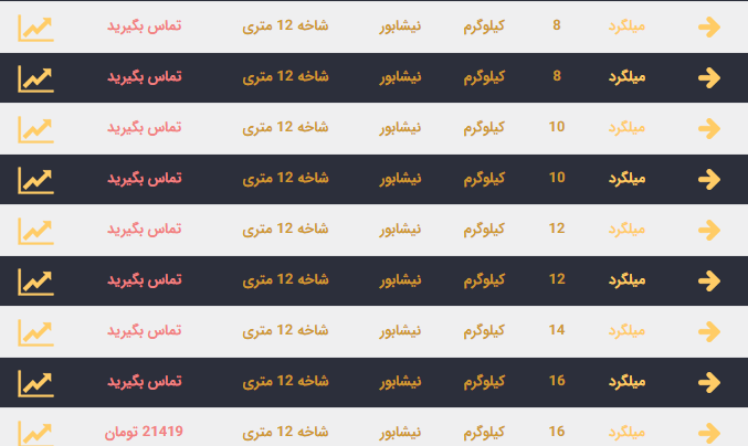 🟢 قیمت روز میلگرد پردیس قم #پردیس_قم | تاریخ بروزرسانی: ۱۴۰۲/۰۸/۲۳ میلگرد 8 پردیس قم (https://moshaveranahan.com/product/%d9%85%db%8c%d9%84%da%af%d8%b1%d8%af-8-%d9%be%d8%b1%d8%af%db%8c%d8%b3-%d9%82%d9%85/) | 21,470 تومان ------------------------------ میلگرد 10 پردیس قم (https://moshaveranahan.com/product/%d9%85%db%8c%d9%84%da%af%d8%b1%d8%af-10-%d9%be%d8%b1%d8%af%db%8c%d8%b3-%d9%82%d9%85/) | 20,460 تومان ------------------------------ میلگرد 12 پردیس قم (https://moshaveranahan.com/product/%d9%85%db%8c%d9%84%da%af%d8%b1%d8%af-12-%d9%be%d8%b1%d8%af%db%8c%d8%b3-%d9%82%d9%85/) | 21,010 تومان ------------------------------ میلگرد 14 پردیس قم (https://moshaveranahan.com/product/%d9%85%db%8c%d9%84%da%af%d8%b1%d8%af-14-%d9%be%d8%b1%d8%af%db%8c%d8%b3-%d9%82%d9%85/) | 20,500 تومان ------------------------------ میلگرد 16 پردیس قم (https://moshaveranahan.com/product/%d9%85%db%8c%d9%84%da%af%d8%b1%d8%af-16-%d9%be%d8%b1%d8%af%db%8c%d8%b3-%d9%82%d9%85/) | 20,500 تومان ☎️ 03191091009 🔵🟠 @moshaveranahan