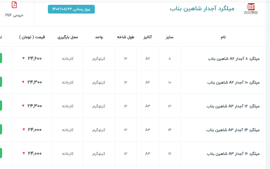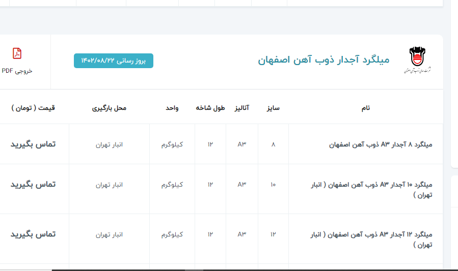 اعلام موجودی میلگرد آجدار