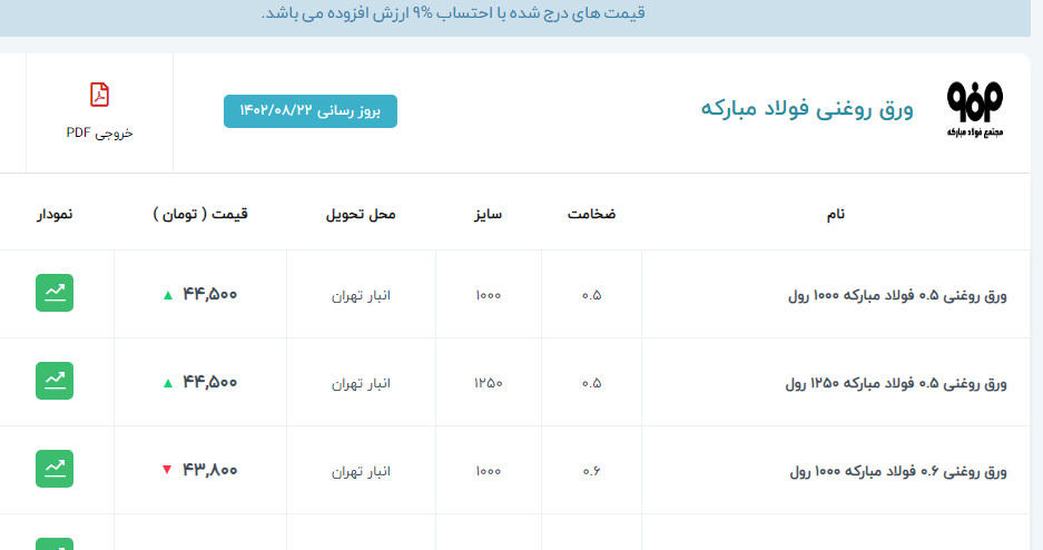 ⭐️ #ورق 🏭 #کاویان 📅 تاریخ: 1402/08/23 📍#انبار_اهواز ۱۵ میل عرض ۱۲۵*۶۰۰⬅️call ۲۰ میل عرض ۱۲۵*۶۰۰⬅️ call ۲۵ میل عرض ۱۲۵*۶۰۰⬅️call ۳۰ میل عرض ۱۲۵*طول⬅️ call ۳۵ میل عرض ۱۲۵*طول⬅️ call ۴۰ میل عرض ۱۲۵*طول⬅️ call ۱۵ میل عرض ۱۵۰*۶۰۰⬅️ call ۲۰ میل عرض ۱۵۰*۶۰۰⬅️ call ۲۵میل عرض ۱۵۰*۶۰۰⬅️ call ۳۰ میل عرض ۱۵۰*طول⬅️ call ۳۵ میل عرض ۱۵۰*طول⬅️ call ۴۰ میل عرض ۱۵۰*طول⬅️ call 📍#انبار_تهران ۱۵میل عرض ۱۵۰*۶۰۰ ⬅️ call ۲۰ میل عرض ۱۵۰*۶۰۰ ⬅️ call ۲۵ میل عرض ۱۵۰*۶۰۰ ⬅️ call ۳۰ میل عرض ۱۵۰*طول ⬅️ call ۳۰ میل عرض ۱۵۰*۶۰۰ ⬅️ call ۳۵ میل عرض ۱۵۰*طول ⬅️ call ۳۵ میل عرض ۱۵۰*۶۰۰ ⬅️ call ۴۰ میل عرض ۱۵۰*طول ⬅️ call ۴۰ میل عرض ۱۵۰*۶۰۰ ⬅️ call ❇️جهت اطلاع از قیمت مبدا یا آلیاژ های #ST52 تماس حاصل فرمایید. 🌐 مشاهده لیست کامل قیمتها ⬅️ 🌐 https://b2n.ir/n52468 ☎️ 1836 ☎️ 021 - 6299 9080 📞 (داخلی 205) ⭐️راحت بخرید، مطمئن بسازید 🆔 @MahdeFoolad