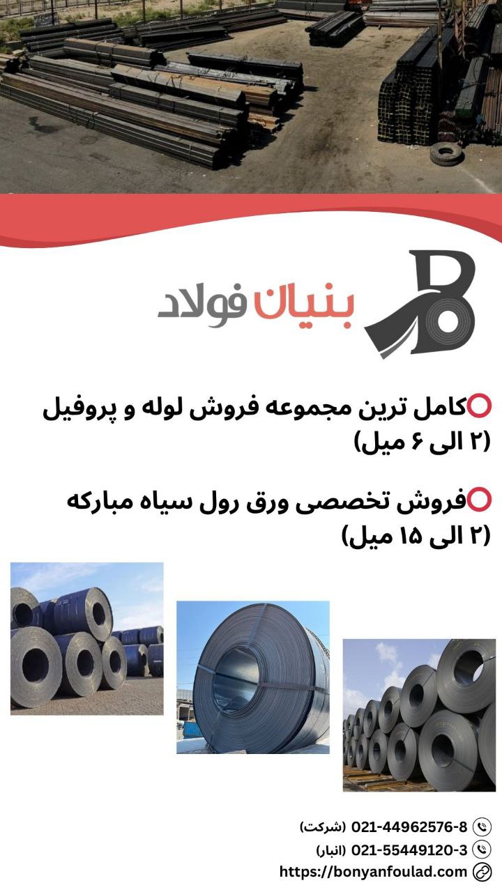 🔴🔴 بنیان فولاد عظیم🔴🔴 ✔️پایین ترین قیمت های بازار تخفیف اولین خرید را از دست ندهید❗️ ✅با بیش از ۵۰ سال سابقه کاری 🔝پیشتاز در صنعت قوطی پروفیل ایران💯 پخش تک و عمده ----------------------------------------------------------------------- محصولات ✔️ضخامت ۲ لنگه /کلافی / سپری / چهارچوب فرانسه ✔️ضخامت ۲.۵ ✔️ضخامت ۳ ✔️ضخامت ۴ ✔️ضخامت ۵ ✔️ضخامت ۶ ✔️ضخامت ۱۲ ضخامت 3 / 2.5 / 2.35 /2 ✔️لوله 32 ✔️لوله 48 ✔️لوله 60 ✔️لوله 76 ----------------------------------------------------------------------- 👈🏻اطلاعات بیشتر ✅کانال تلگرامی https://t.me/bonyan_foulad ✅اینستاگرام https://www.instagram.com/bonyanfolad?igsh=OGQ5ZDc2ODk2ZA== ✅سایت https://bonyanfoulad.com/ ✅تلفن واحد فروش ☎️021-44962576-8