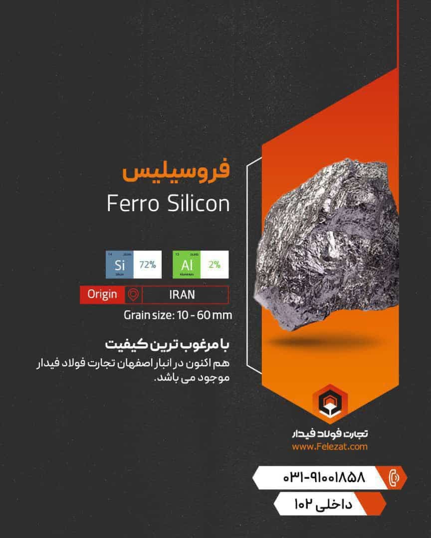 فروش ویژه انواع فروسیلیس با دانه بندی 10-60 و 3-10 و 0-20 سیلیس 70-72 سیلیس 60-65 فروش فروسیلیکومنگنز با دانه بندی 10-60 منگنز 60 و سیلیس 14 آنالیز منگنز 50 و سیلیس 10 ما مفتخریم که مرغوب ترین محصولات را جهت رشد و بهبود صنایع کشور در اختیار شما تولیدکنندگان عزیز قرار می دهیم تجارت فولاد فیدار سپاهان جهت سفارش 09130061858 03191001858