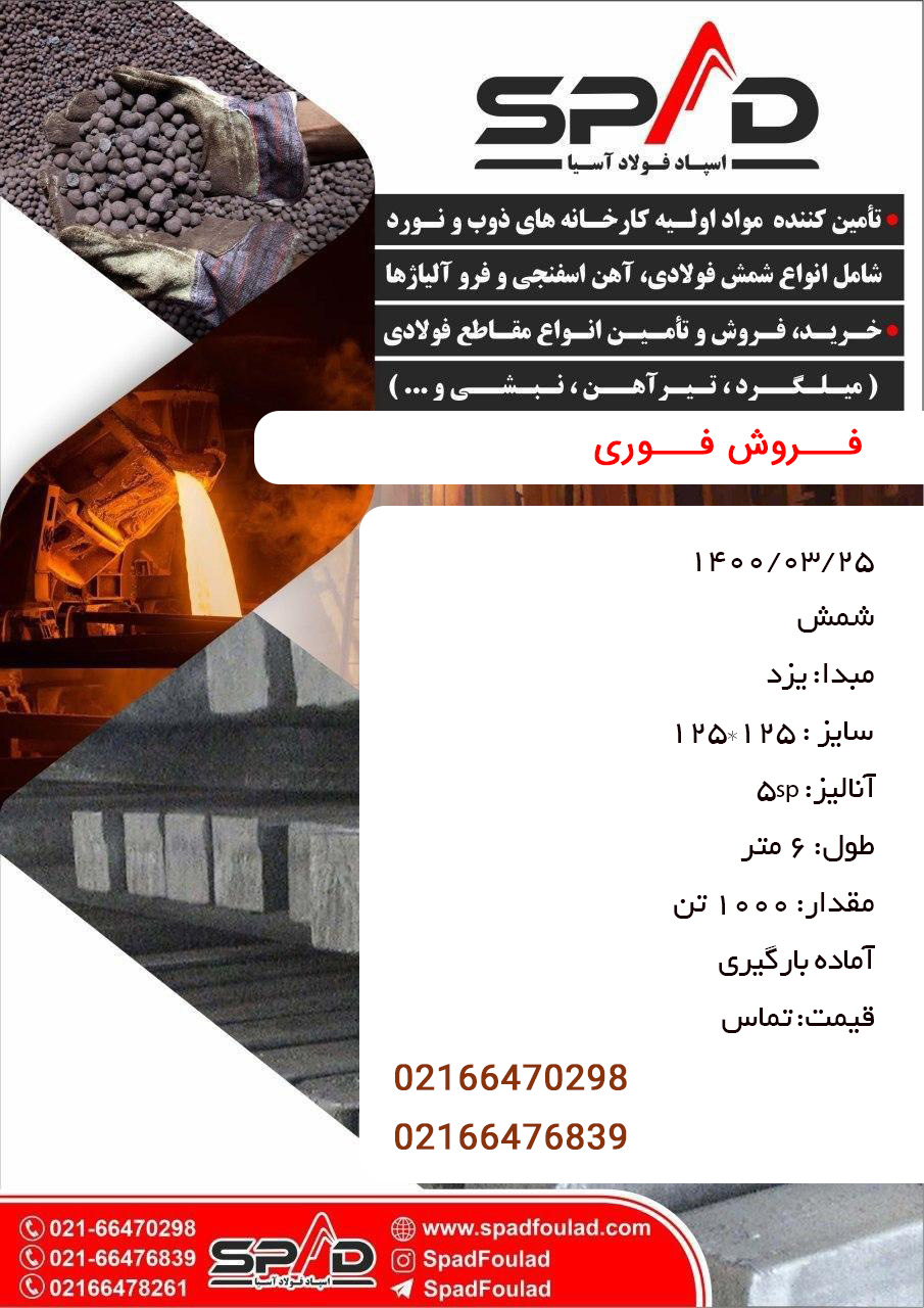 1400/03/26 فروش ⬅️ اسفنجی میانه مقدار:1000 تن مبدا: آذربایجان قیمت: تماس آماده بارگیری ۰۲۱۶۶۴۷۰۲۹۸ ۰۲۱۶۶۴۷۶۸۳۹ @SpadFoulad