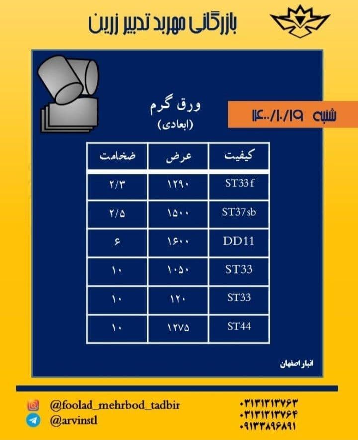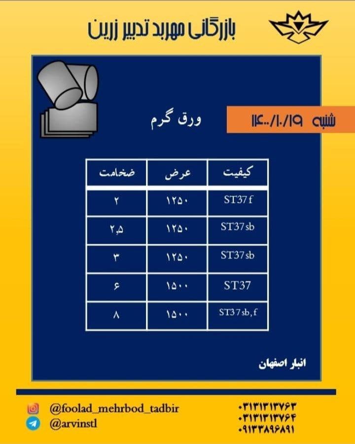 بازرگانی انواع ورق های👇🏻👇🏻 🔹ورق سیاه 🔹ورق روغنی 🔹ورق رنگی 📱09133896891 ☎️031-31313764 ☎️031-31313763