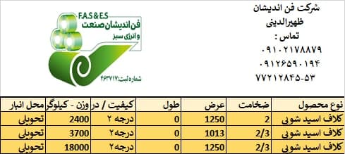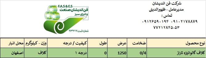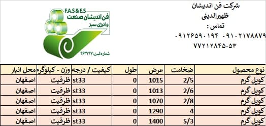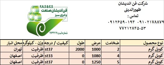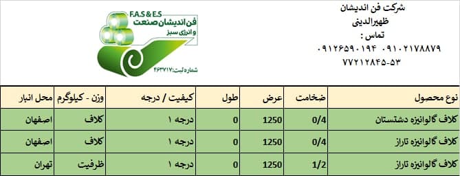 اعلام موجودی ورق گالوانیزه