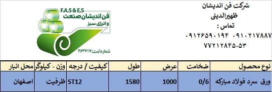 شرکت فن اندیشان صنعت و انرژی سبز عرضه کننده کلیه محصولات تخت و مقاطع فولادی مدیر عامل : سیدقاسم ظهیرالدینی 09126590194 تلفن های ثابت : 53- 77212845