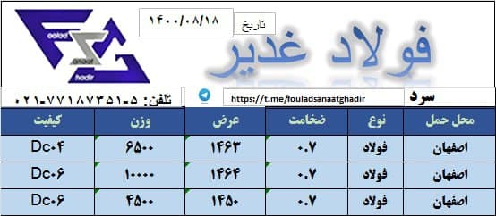 کویل گرم3*1585کیفیت st33اصفهان 📞021-77187351_5 🔹 https://t.me/fouladsanaatghadir 🔹