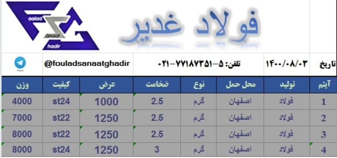 کویل گرم4*1250کیفیت st37اصفهان 📞021-77187351_5 🔹 https://t.me/fouladsanaatghadir 🔹