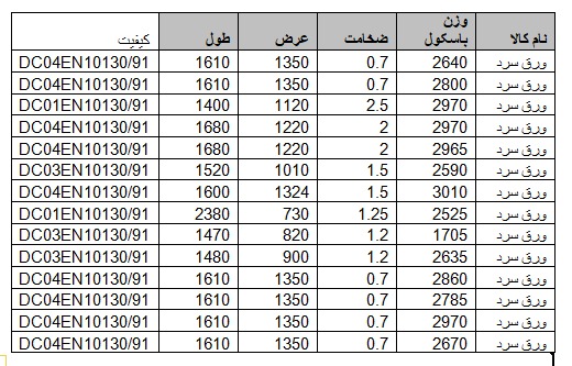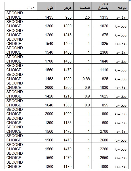 با سلام کویل موجود: کویل گرم فولاد مبارکه 2.5*1275 St33 5.3*1429 St33 8*1300 St52 6*1250 St37 سبا 8* ...