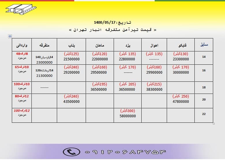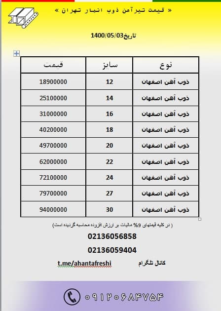 قیمت #تیرآهن_ذوب انبار تهران باتائید ✅قیمت نهایی هنگام خرید ۳۶۰۵۶۸۵۸ ۳۶۰۵۹۴۰۴ ۰۹۱۲۰ ...