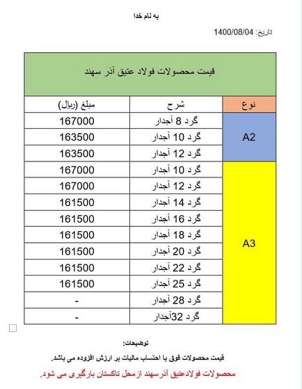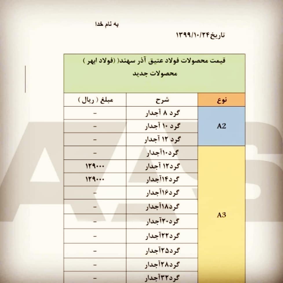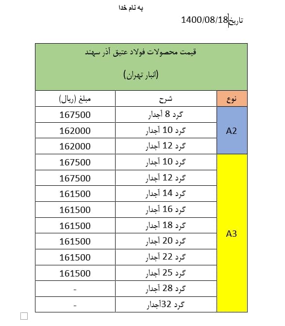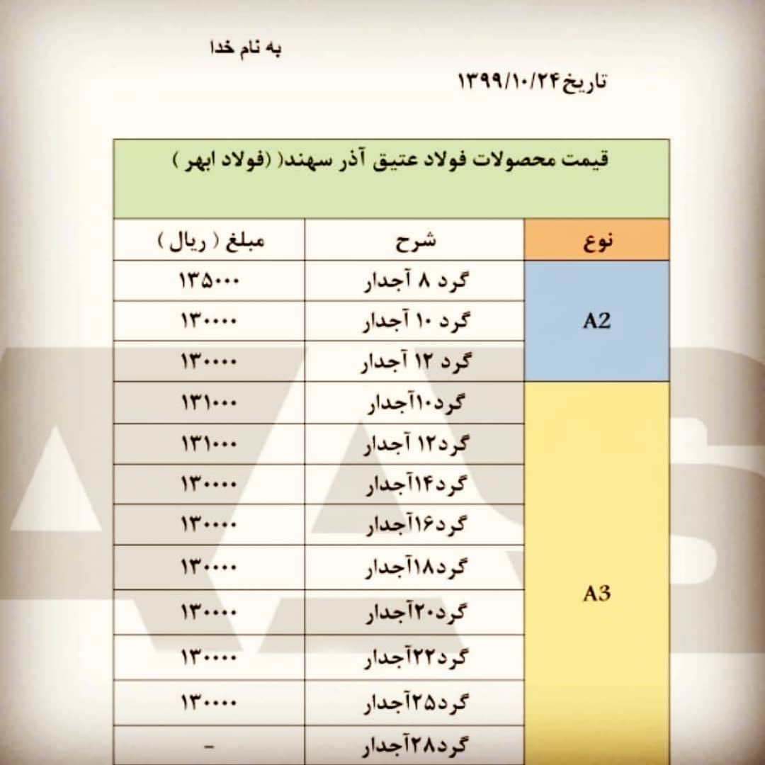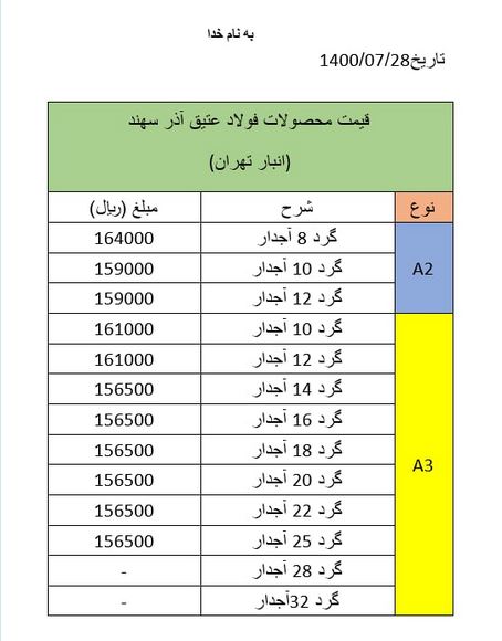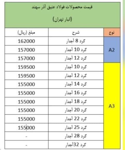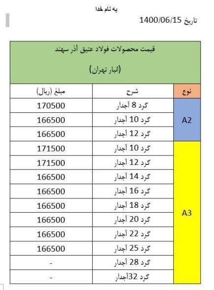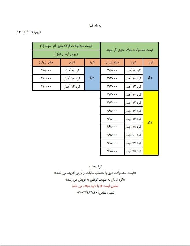 فولاد عتیق سهند تامین کننده ی انواع میلگرد موجودی میلگرد امروز را در فایل ارسالی مشاهده بفرمایید 09353454452 09128994393 09143190126