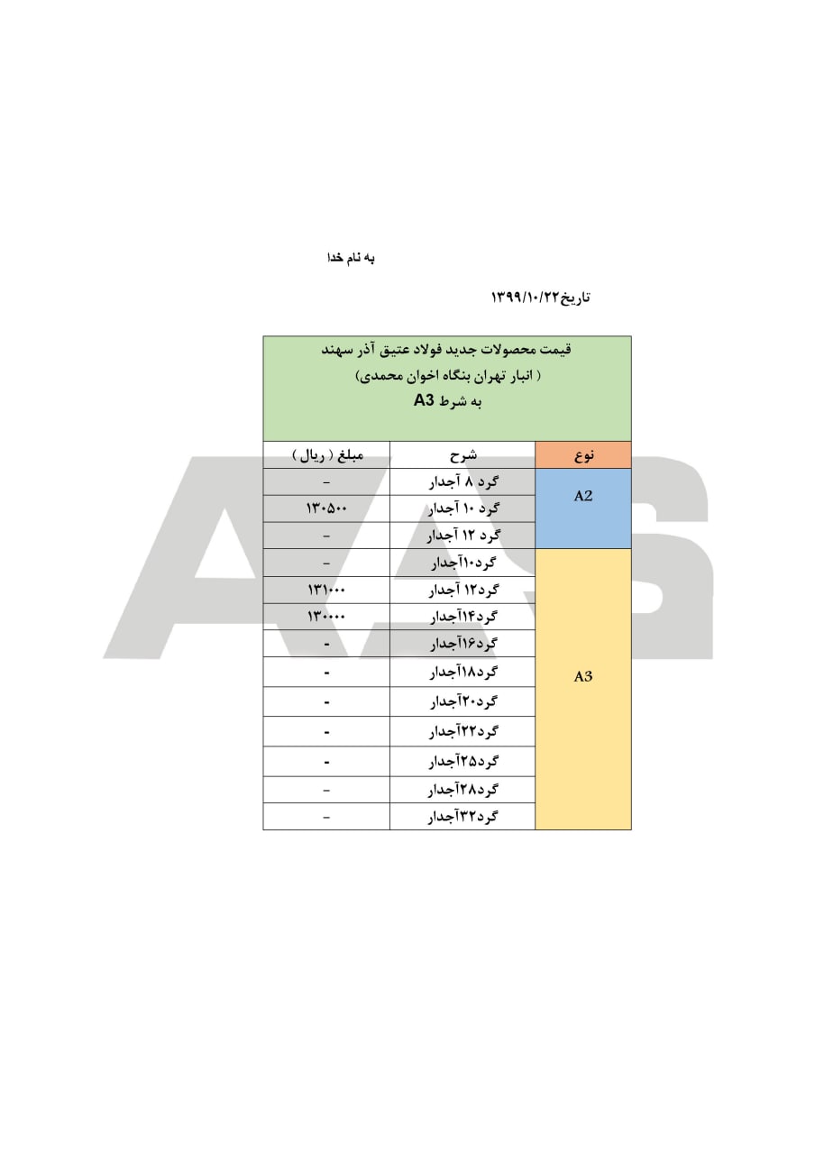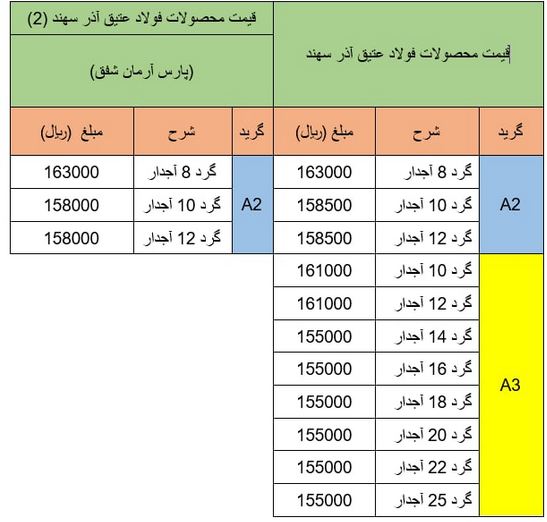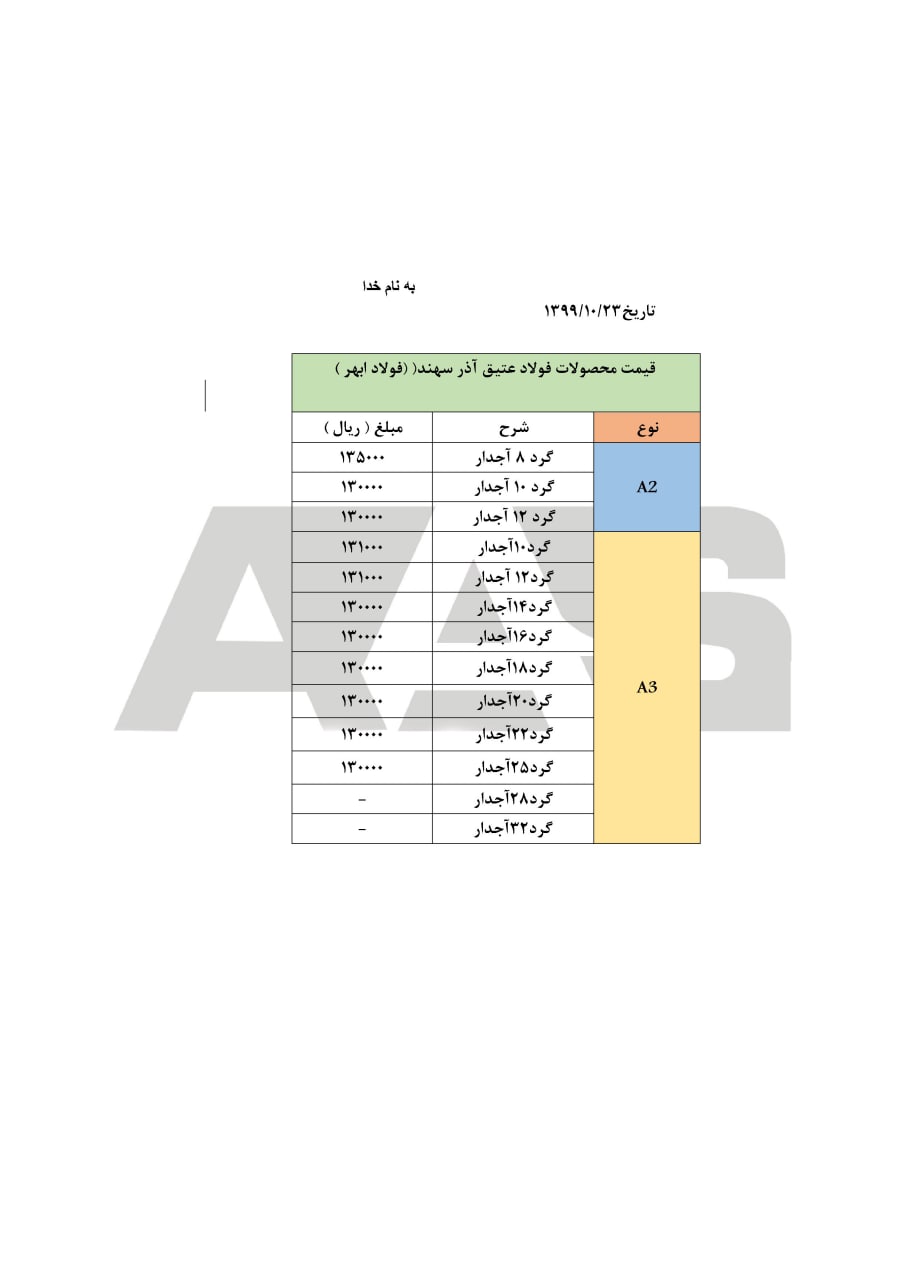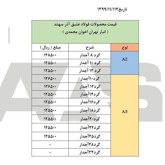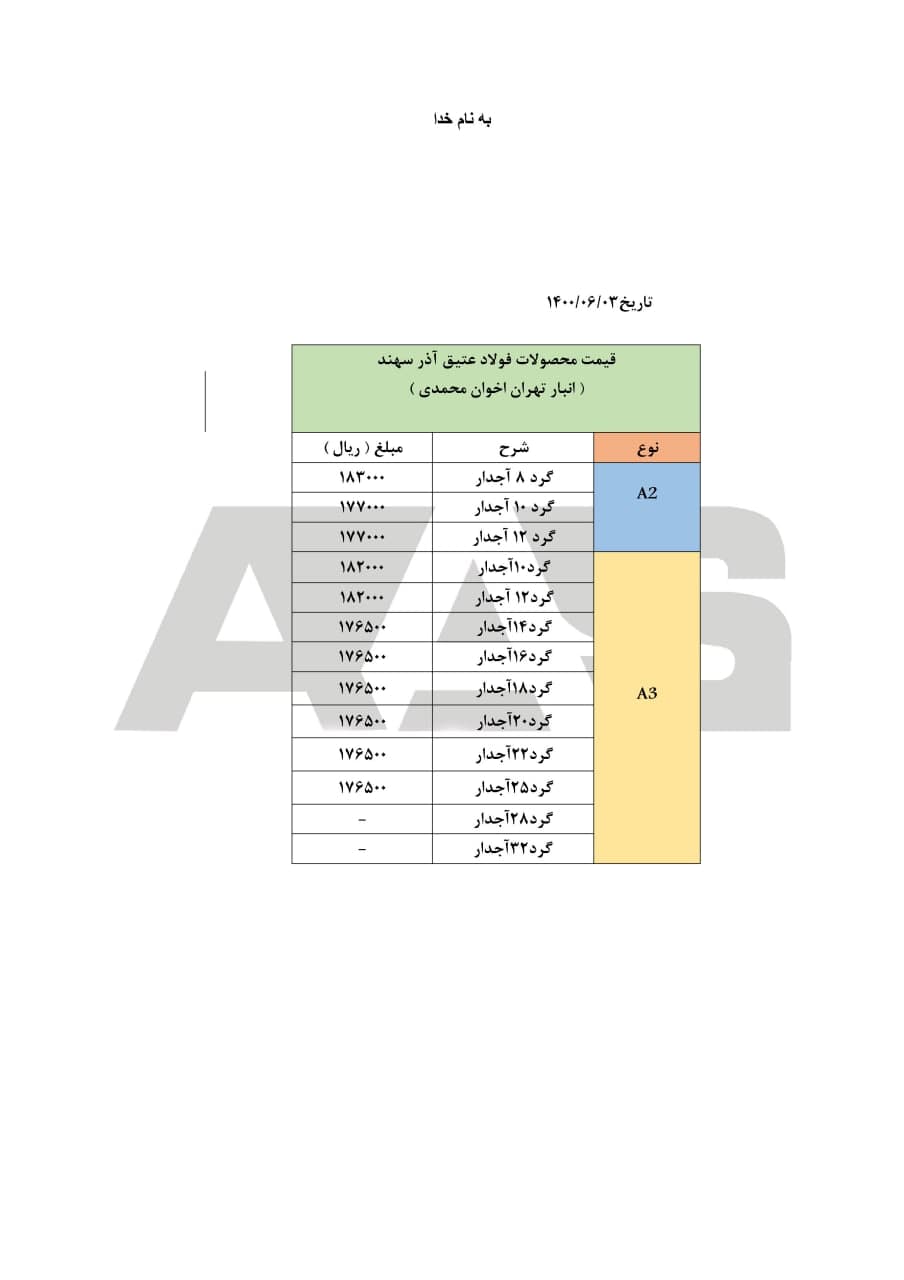 فولاد عتیق سهند تامین کننده ی انواع میلگرد موجودی میلگرد امروز را در فایل ارسالی مشاهده بفرمایید 09353454452 09128994393 09143190126