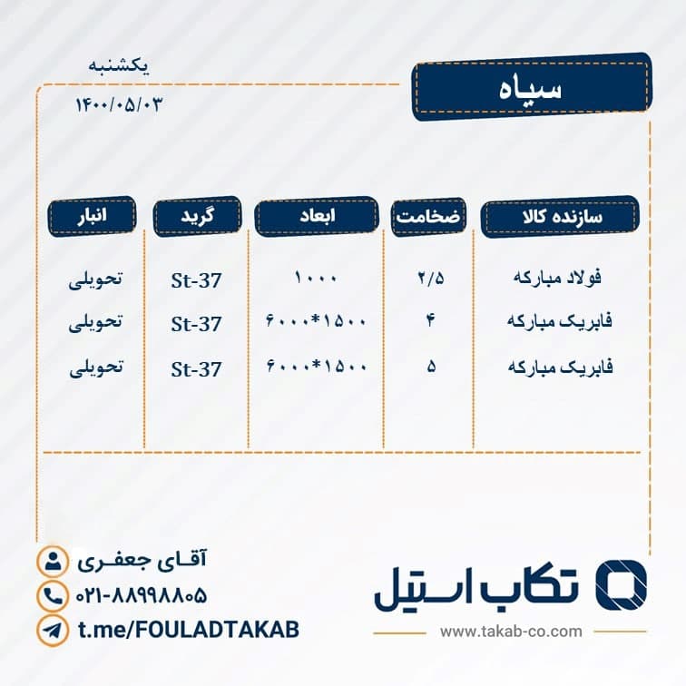 🔴 ورق سياه فولاد مباركه 🔴 ۴ عرض ۱۲۵۶ کیفیت st-33 ۴ عرض ۱۱۰۰ کیفیت st-33 ۱۰ عرض ۱۰۵۰ کیفیت st-33 ۱۰ عرض ۱۳۰۰ کیفیت st-33 «تهران » 021-88998805