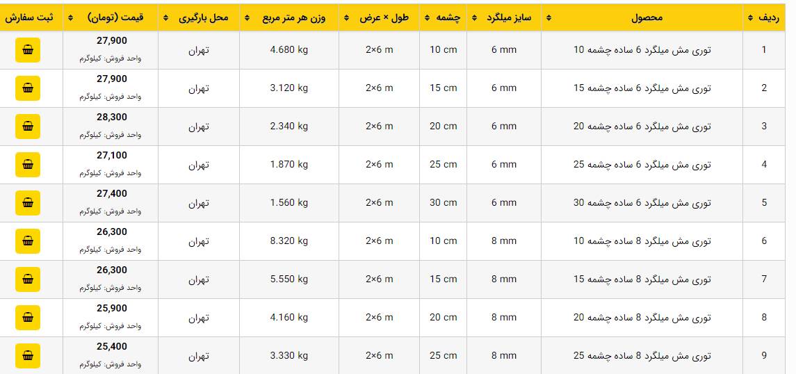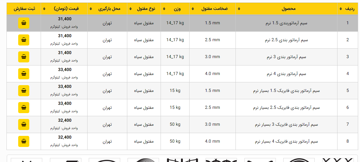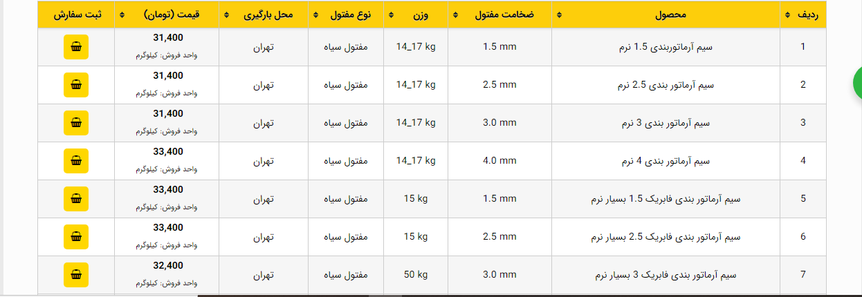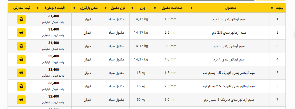 اعلام موجودی سیم ارماتور بندی شهر مفتول