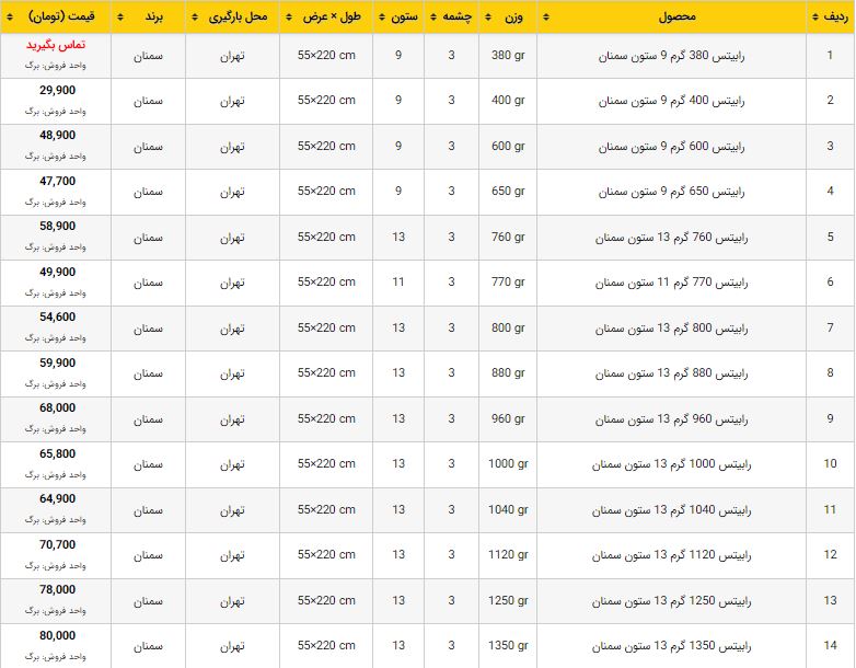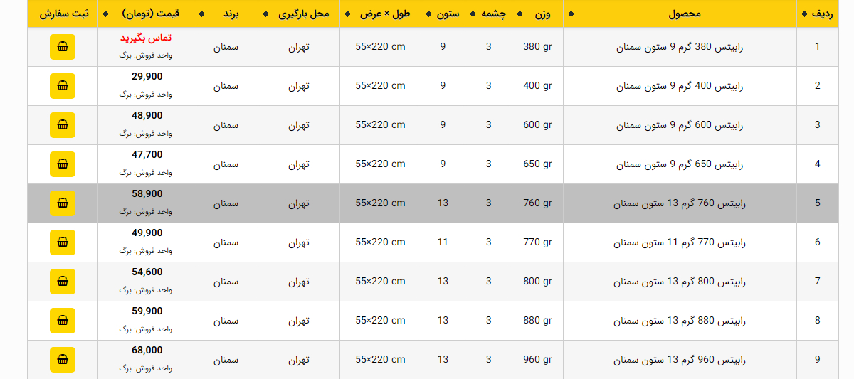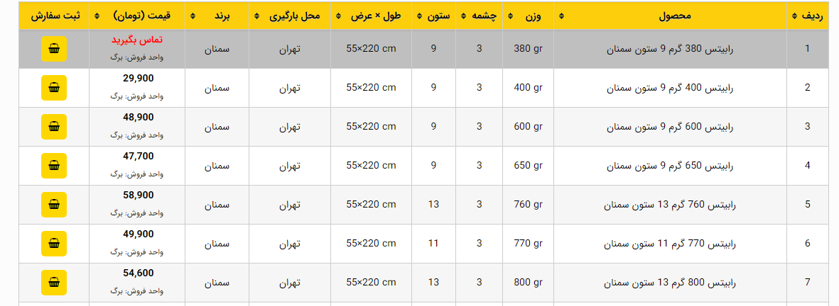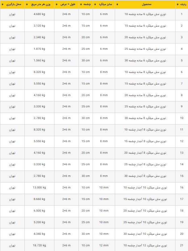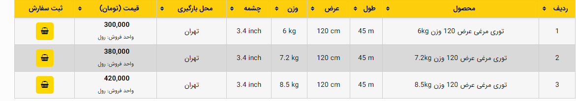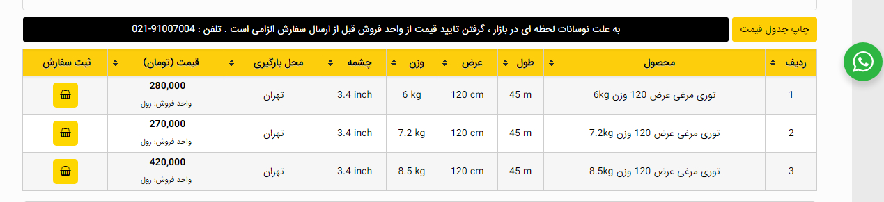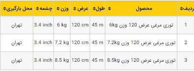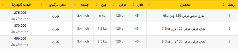 اعلام موجودی انواع توری توری رابیتس شهرمفتول