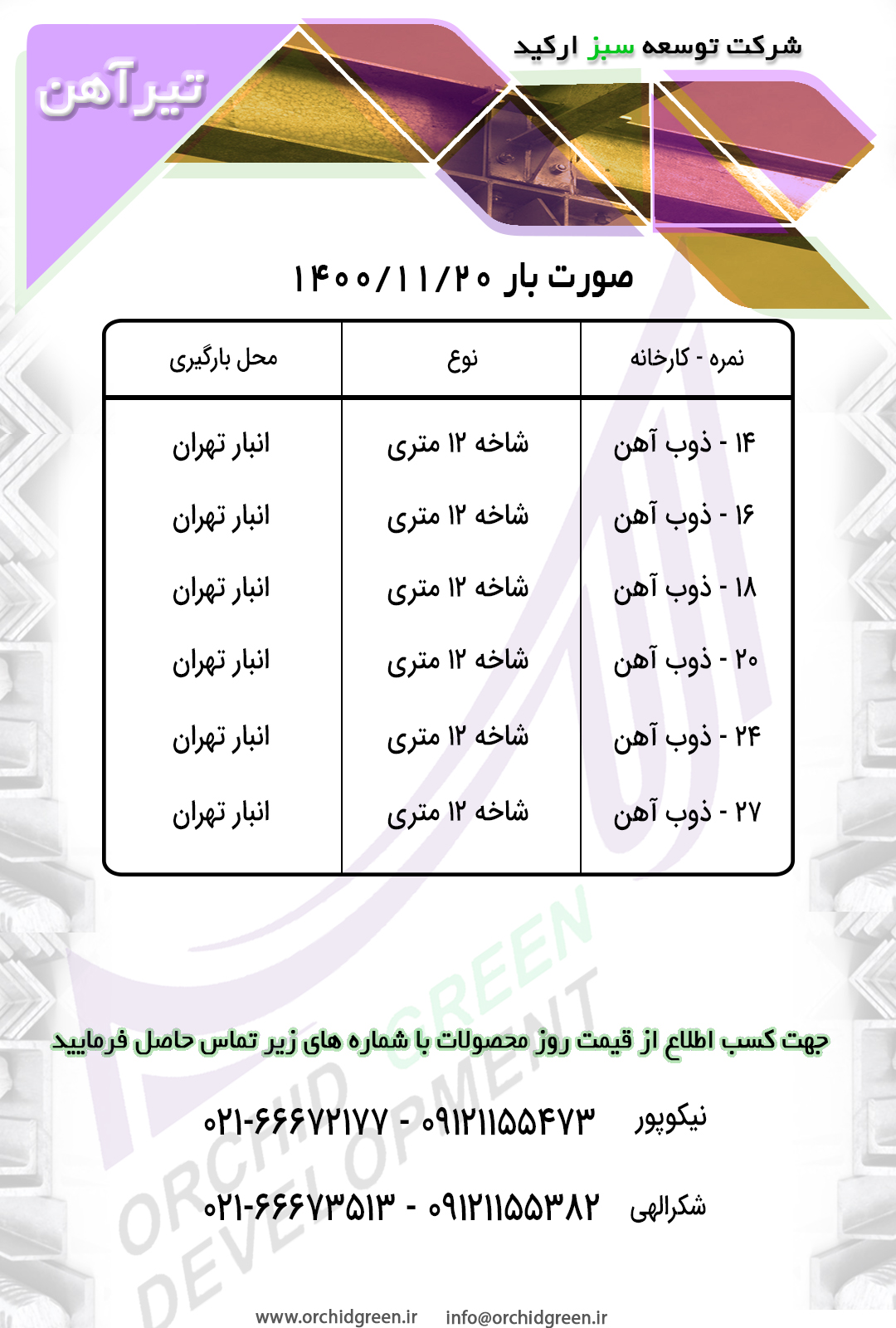 برای خرید انواع تیرآهن به شماره واتساپ 09332928115 و یا وبسایت : www.orchidgreen.ir مراجعه نمایید .