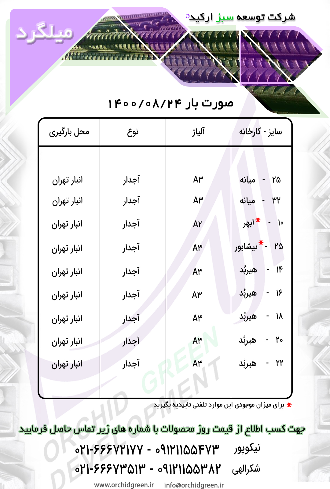 برای خرید انواع میلگرد آجدار به شماره واتساپ 09332928115 و یا وبسایت : www.orchidgreen.ir مراجعه نمایید .