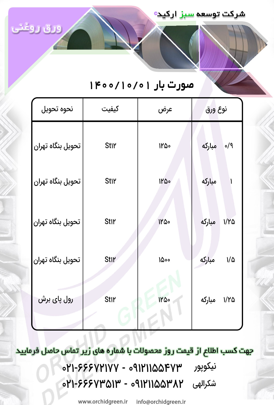 برای خرید انواع ورق روغنی و ورق سرد به شماره واتساپ 09332928115 و یا وبسایت : www.orchidgreen.ir مراجعه نمایید .