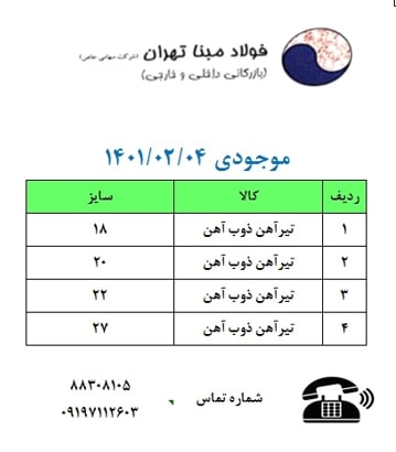 ⭕️شرکت فولاد #مبنا_تهران 📱09121110845 📱09904321038 📱09904321039 ☎️02188308105 🆔http://t.me/FouladMabnaTehran 📌 https://www.instagram.com/Foulad_mabna_tehran ...
