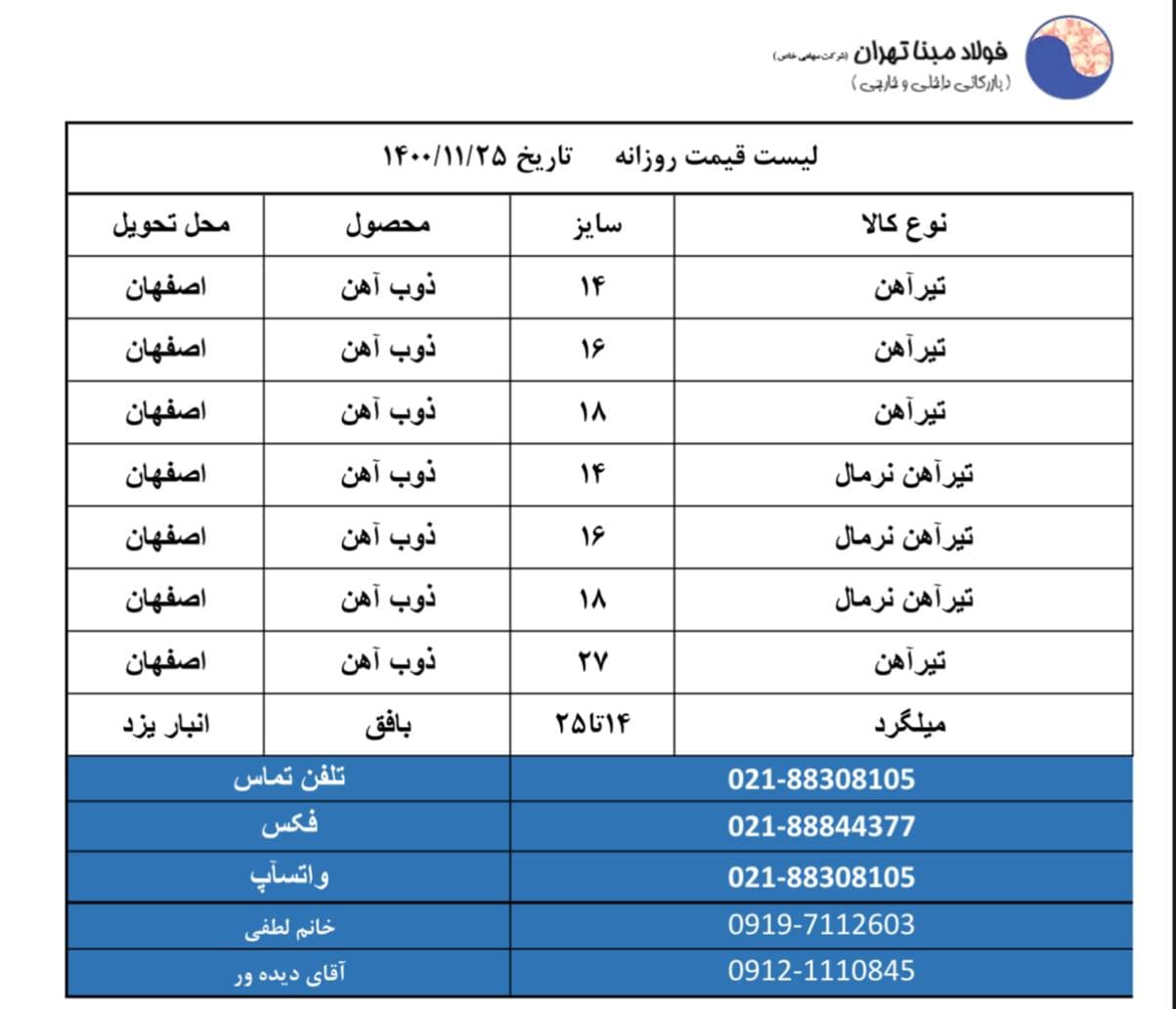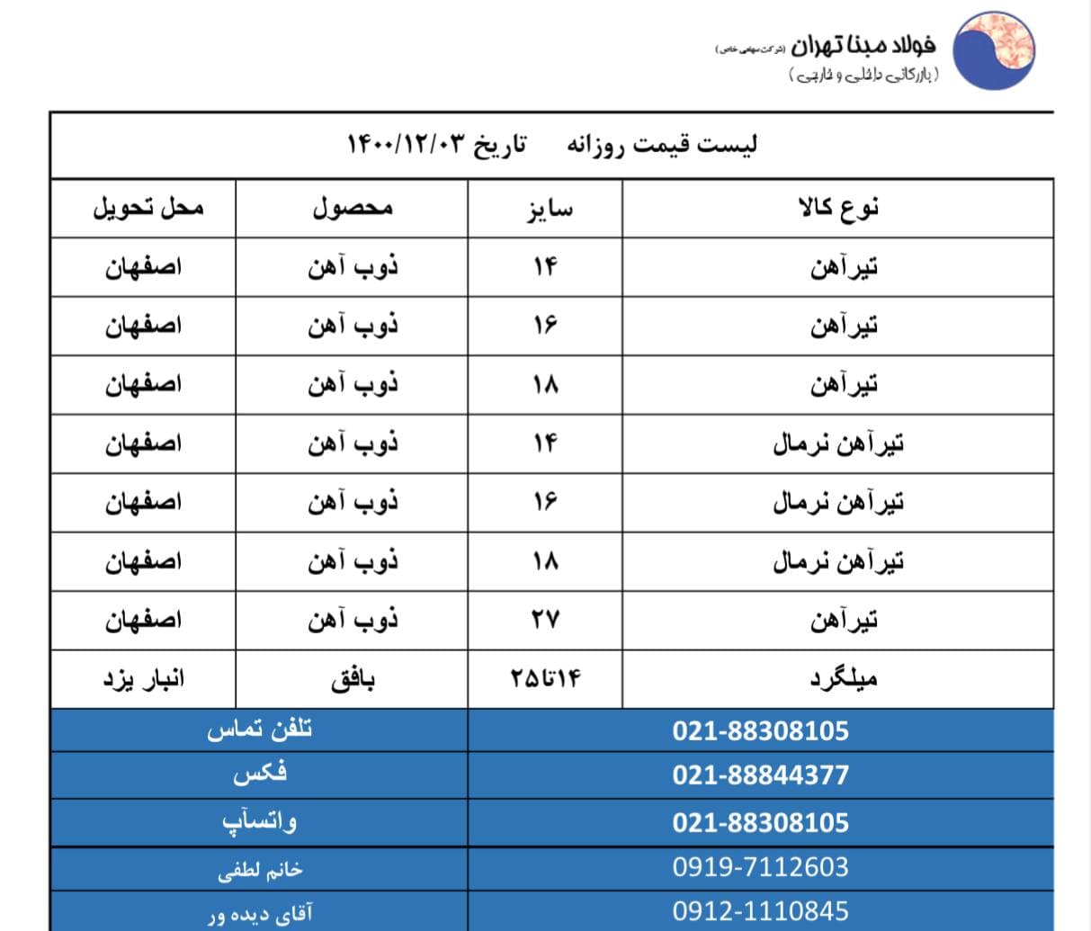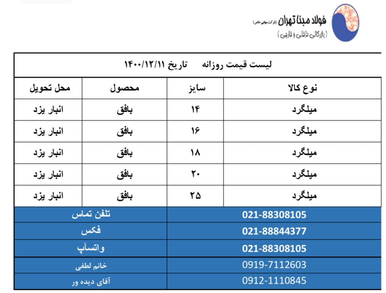 شرکت فولاد #مبنا_تهران 📱09121110845 📱09904321038 📱09904321039 ☎️02188308105 🆔http://t.me/FouladMabnaTehran 📌 https://www.instagram.com/Foulad_mabna_tehran