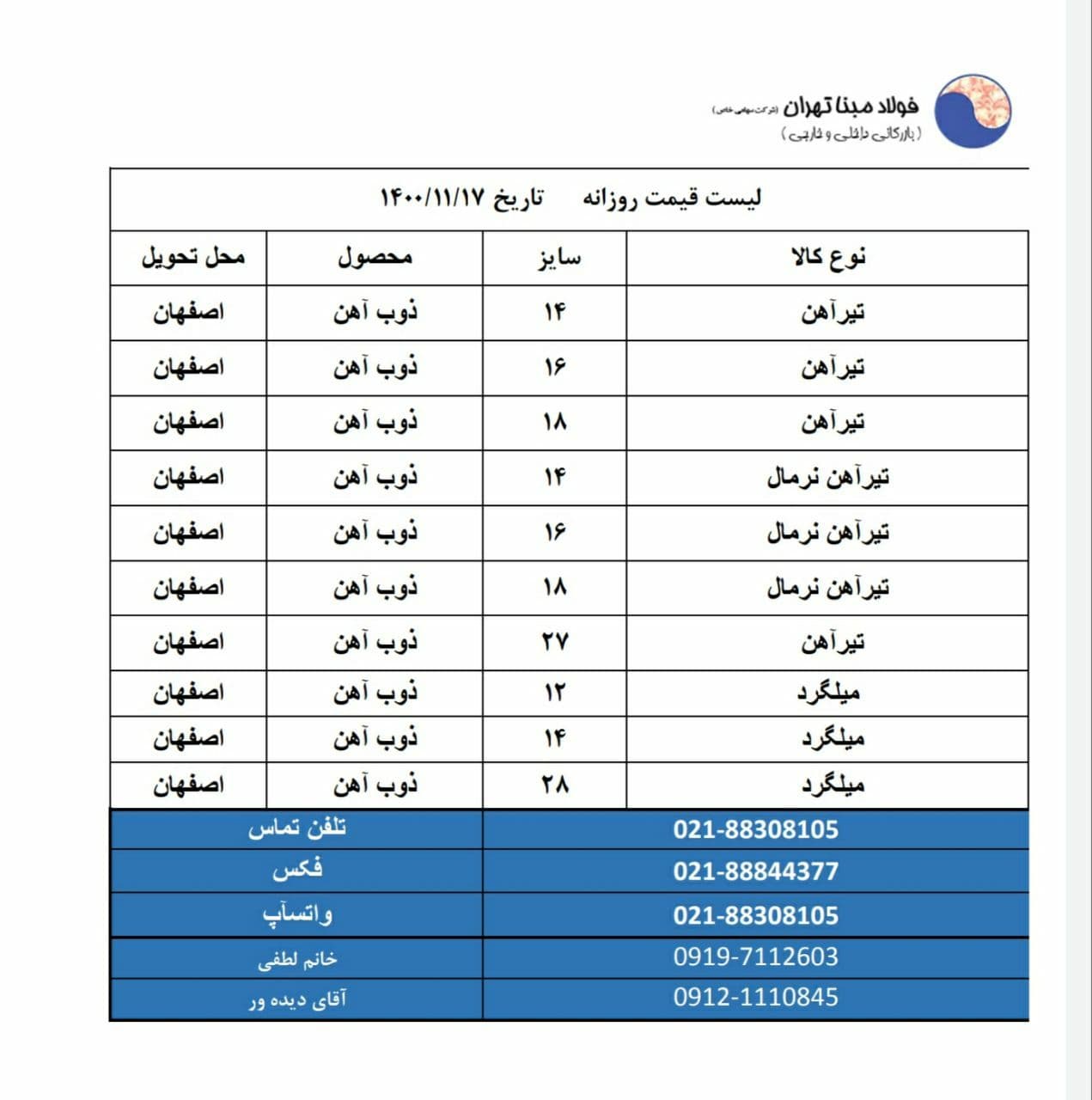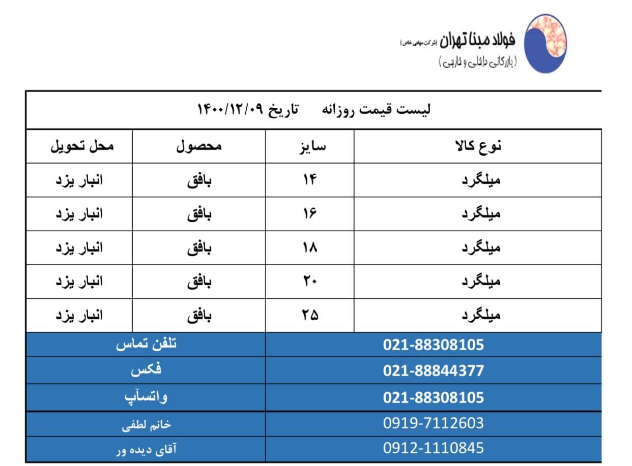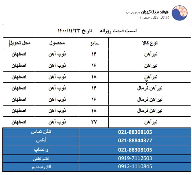 شرکت فولاد #مبنا_تهران 📱09121110845 📱09904321038 📱09904321039 ☎️02188308105 🆔http://t.me/FouladMabnaTehran 📌 https://www.instagram.com/Foulad_mabna_tehran
