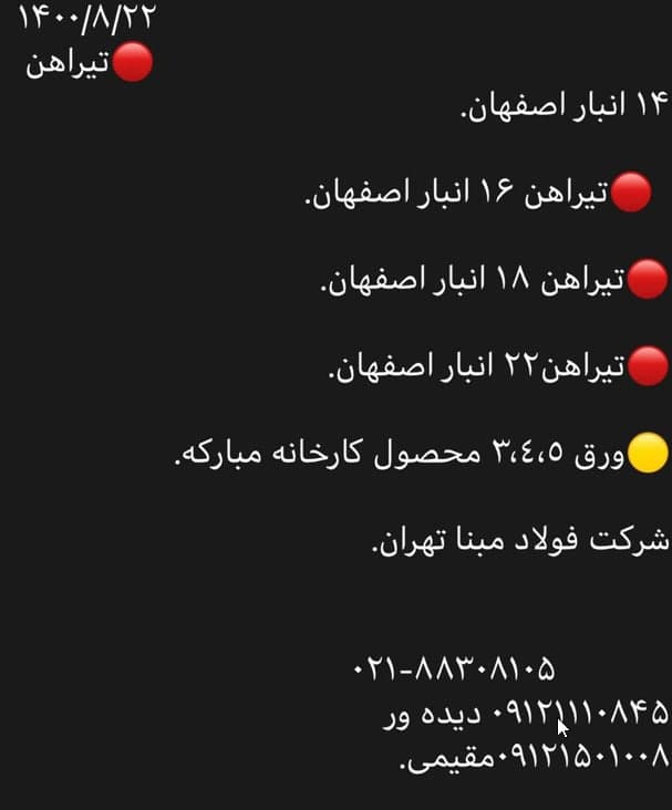 ⭕️شرکت فولاد #مبنا_تهران 🔴تیراهن ۱۴ انبار اصفهان. 🔴تیراهن ۱۶ انبار اصفهان. 🔴تیراهن ۱۸ انبار اصفهان. ...