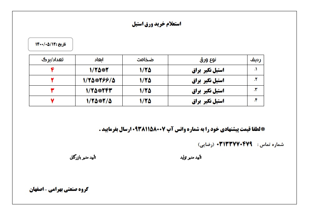 جهت مشاهده درخواستهای خرید کلیک کنید.صورت باری ثبت نشده است!