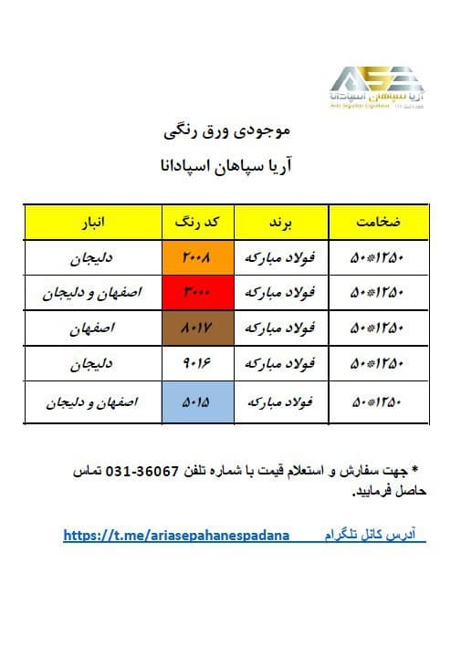 آریا سپاهان اسپادانا تولید کننده ی انواع لوله،قوطی،پروفیل ستونی ،سازه ی فلزی ،فرمینگ ،ورق برشکاری آدرس :اصفهان خیابان مشتاق اول ابتدای خیابان ابوالحسن اصفهانی ...
