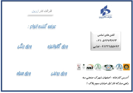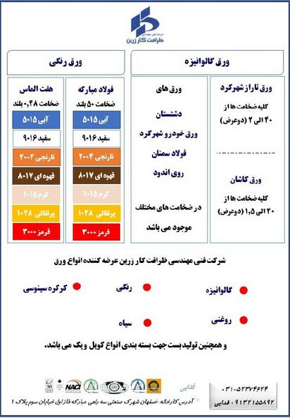⚙️ شرکت فنی مهندسی ظرافت کار زرین ♦️عرضه کننده انواع ورق گالوانیزه - رنگی - روغنی و سیاه ☎️ ۰۳۱۵۲۳۷۴۶۲۴-۹ 📠 ۰۳۱۵۲۳۷۴۶۲۳