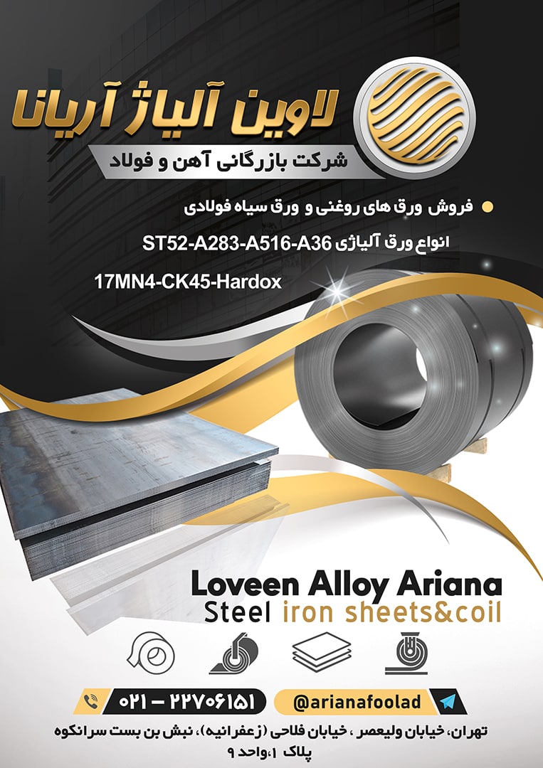 💢بازرگانی #لاوین_آلیاژ_آریانا ✅تامین کننده انواع ورق های: 🔶ورق سیاه 🔷ورق روغنی 🔶ورق آلیاژی (St52-A283-A516-A36-17MN4-CK45-Hardox) کسب اطلاعات بیشتر و ...