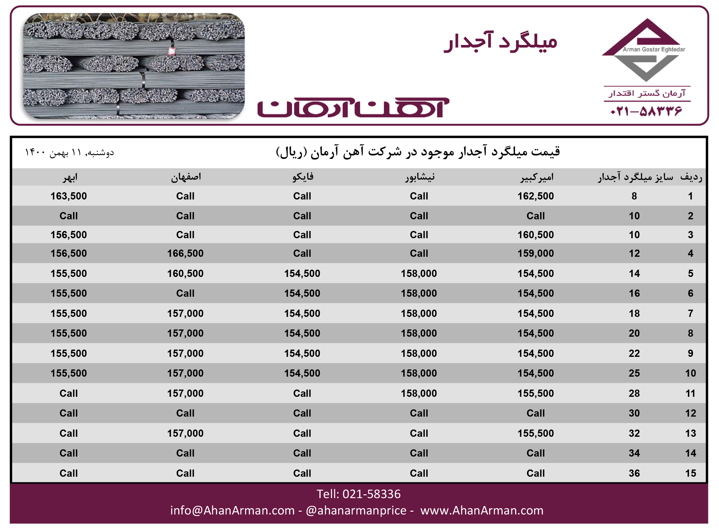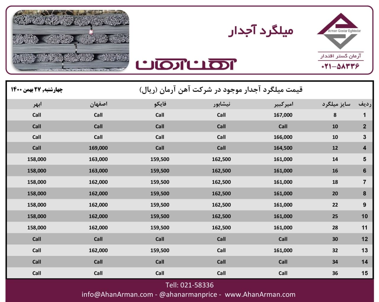 میلگرد ☎️021-58336 🌐www.ahanarman.com 🆔 @ahanarmanprice https://t.me/AhanArmanPrice