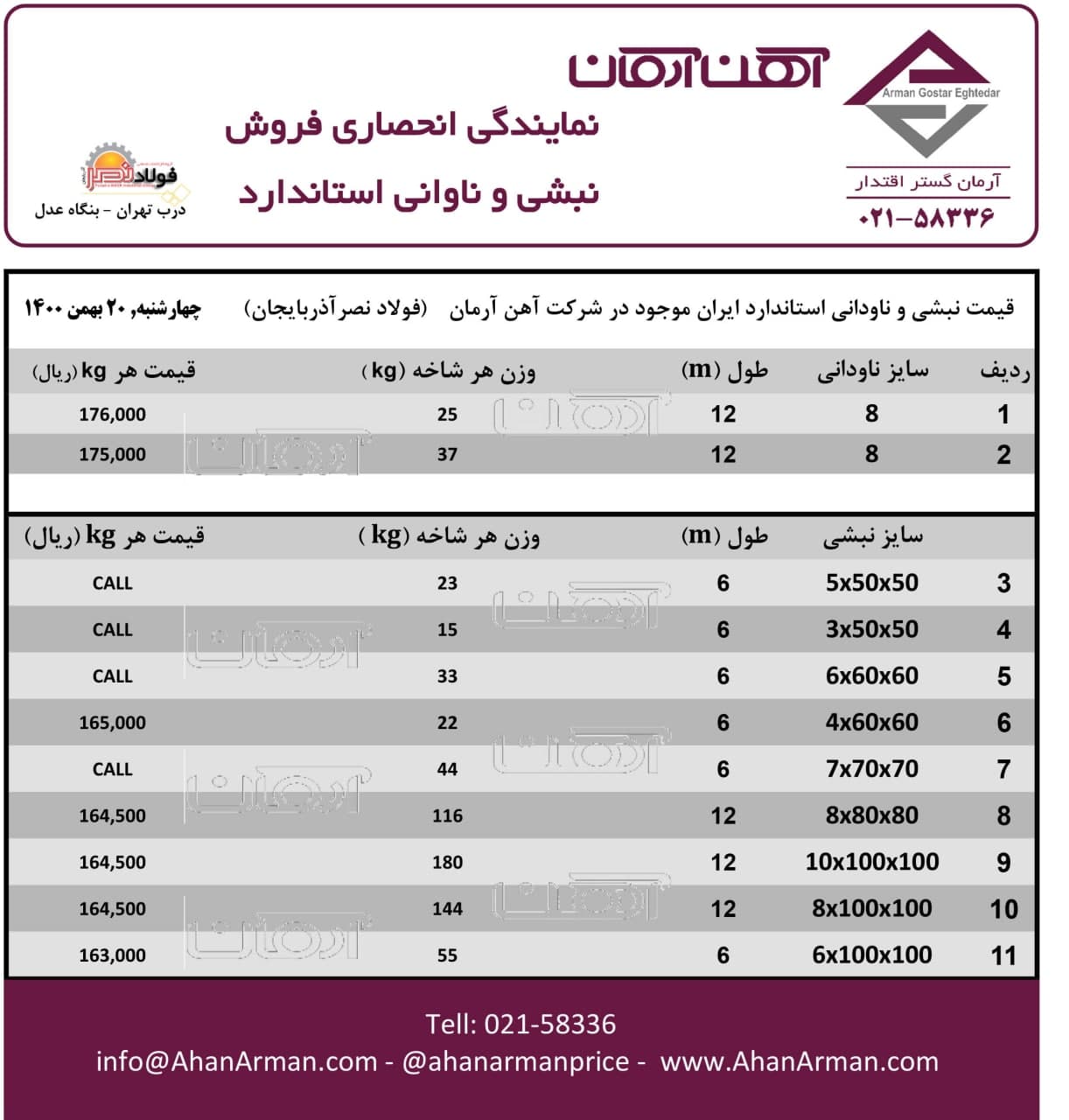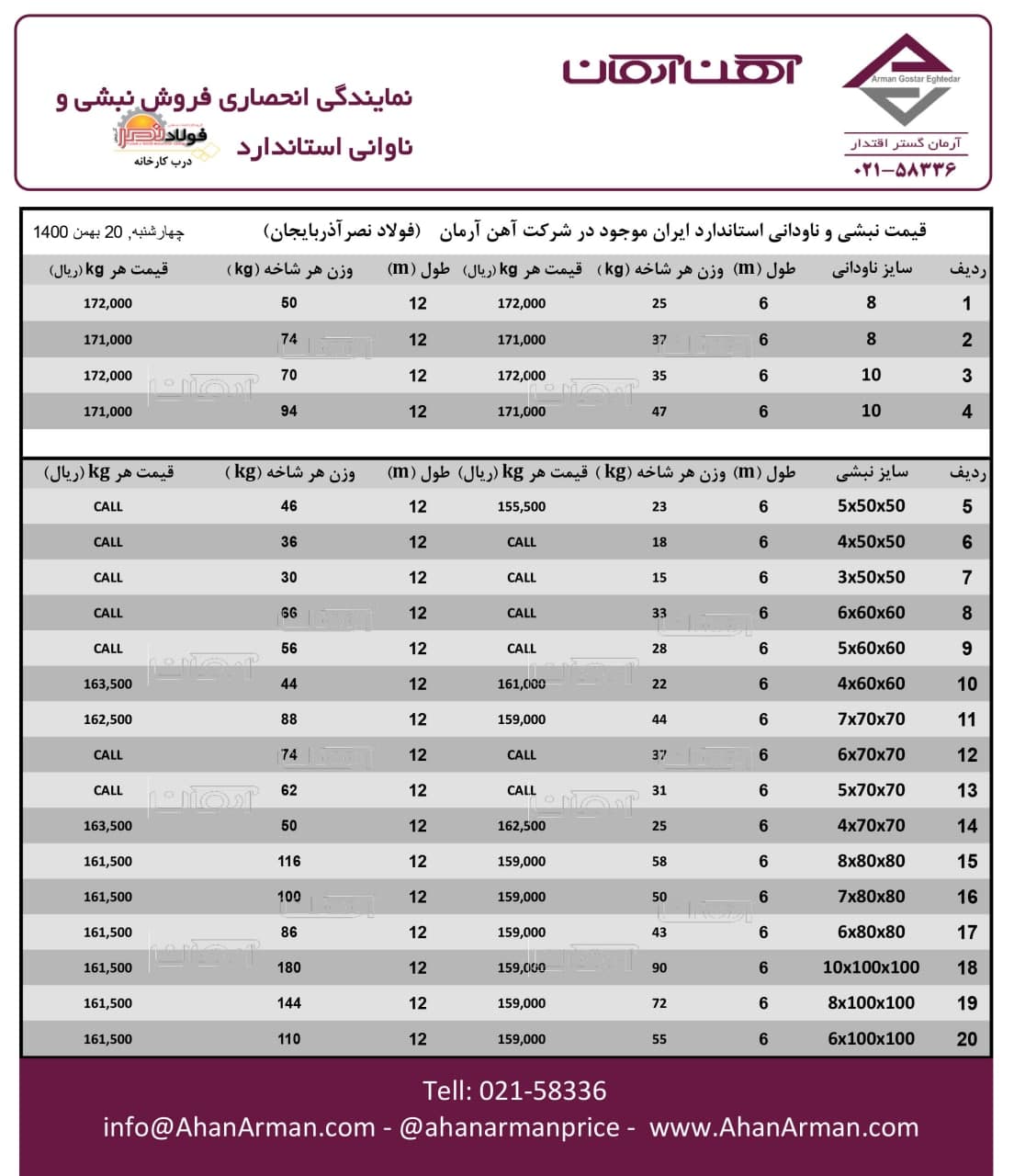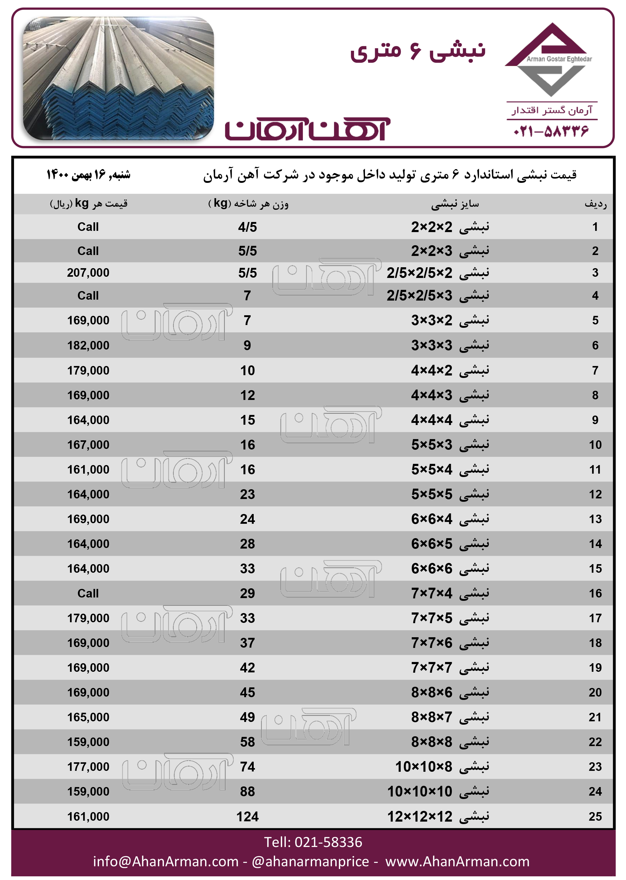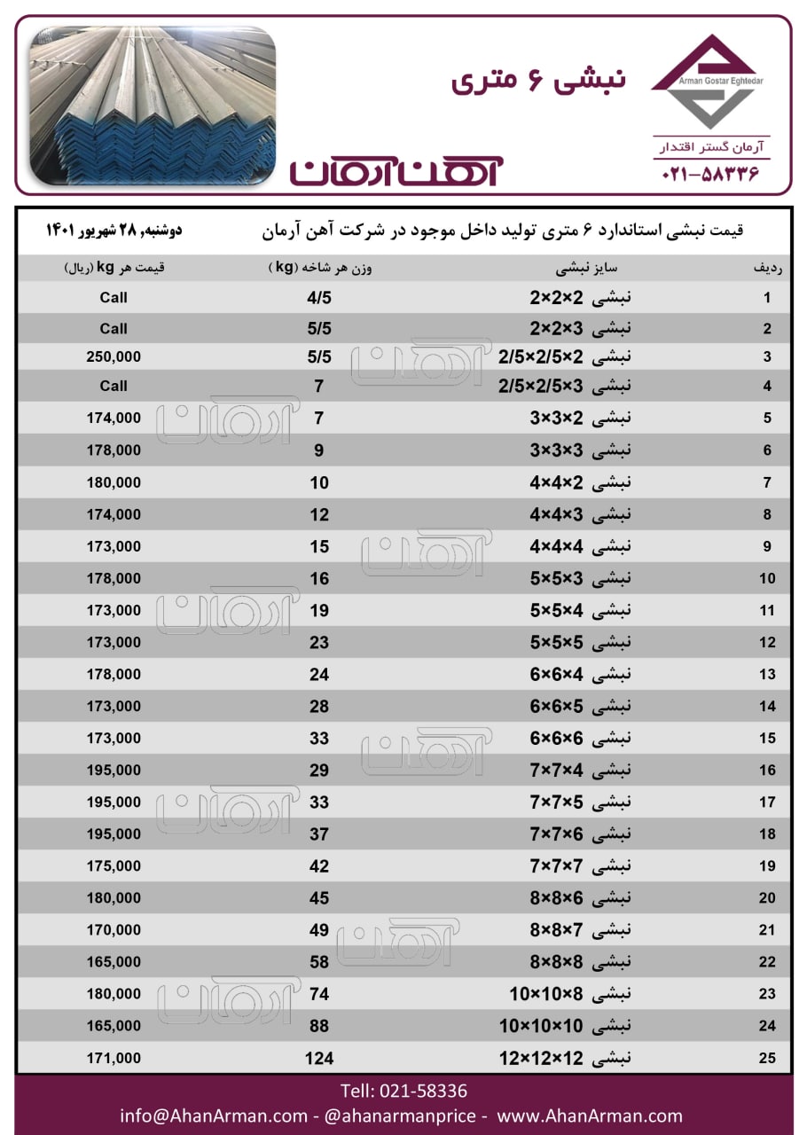 نبشی 6 متری ☎️021-58336 🌐www.ahanarman.com 🆔 @ahanarmanprice https://t.me/AhanArmanPrice