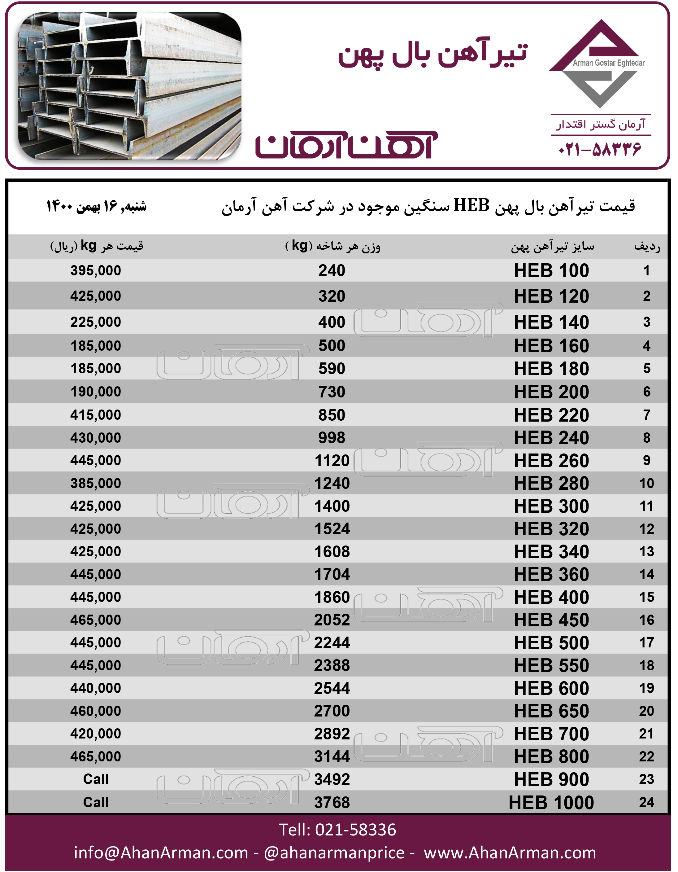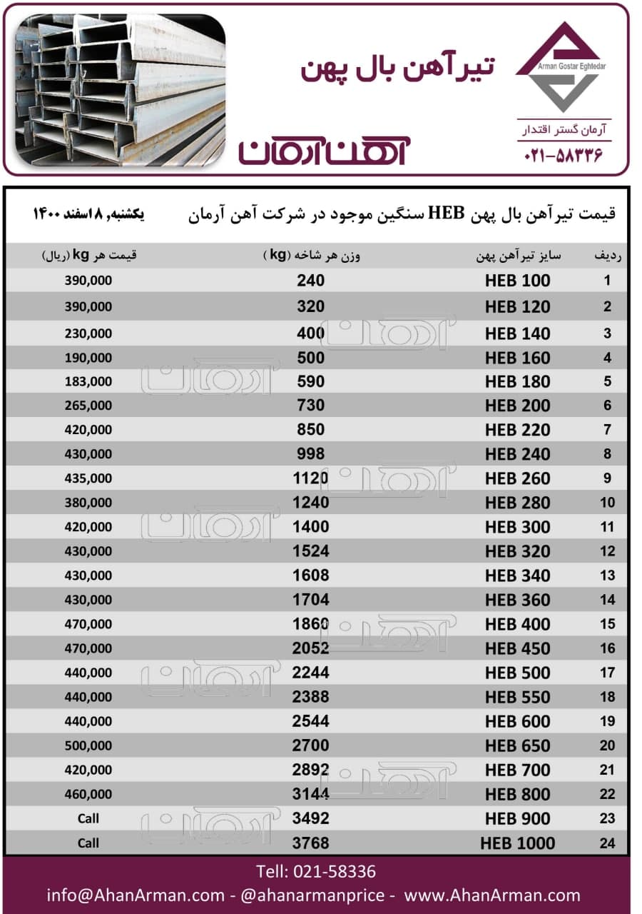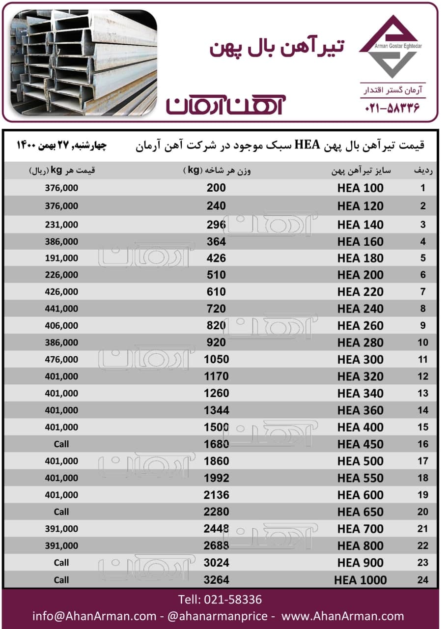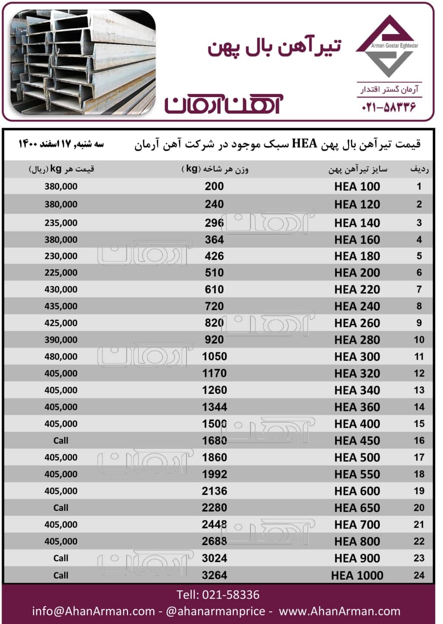 📢قیمت روز تیرآهن بال پهن سبک HEA انبار تهران📢 شاخه 12 متری (سایز 10 تا 100) ~~~~~~~~~~~~~~~~~ ☎️۰۲۱-۵۸۳۳۶ داخلی ۱۱۳ خانم طیبی 🌐www.ahanarman.com وب سایت @AhanA ...