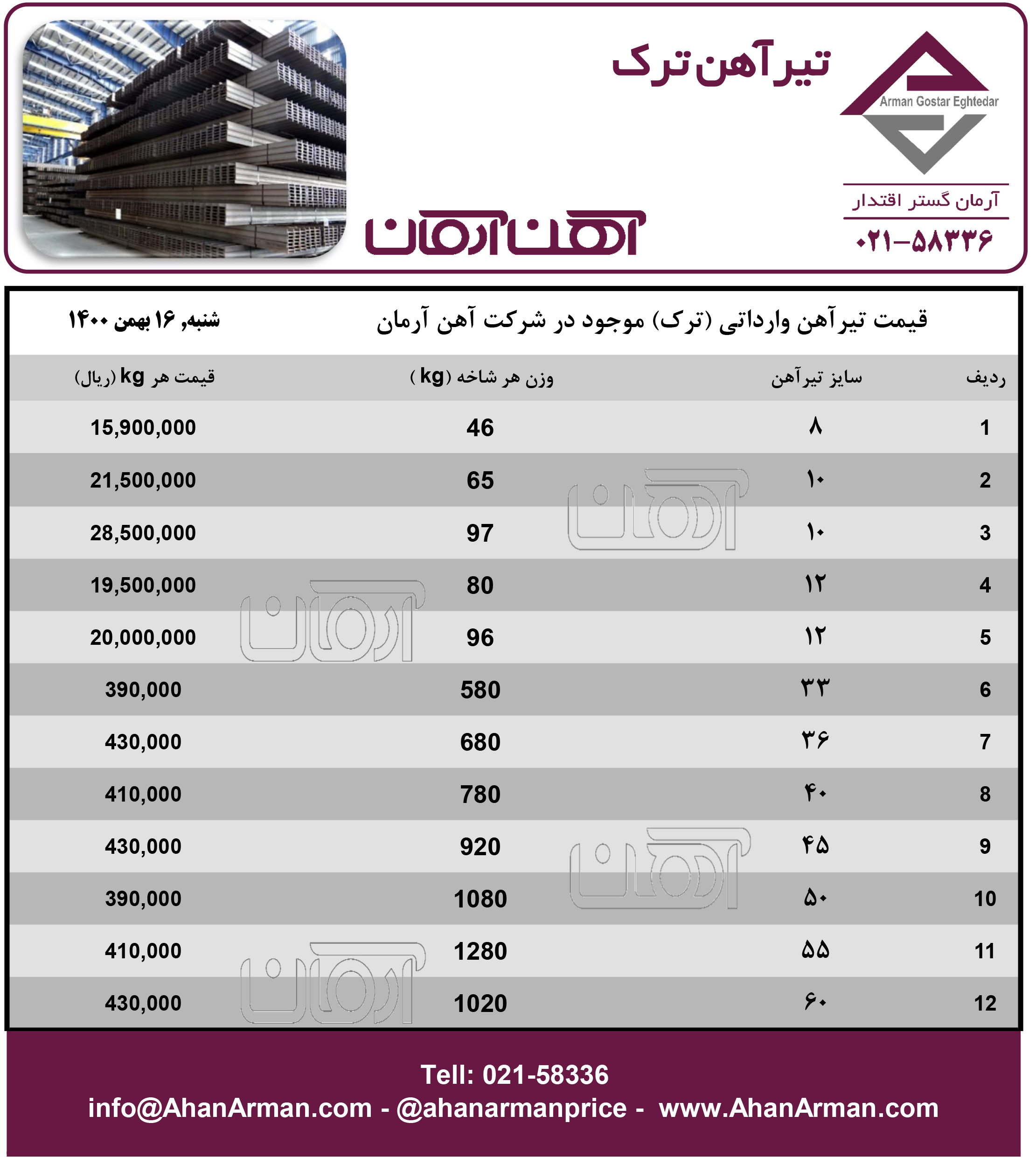 ☎️۰۲۱-۵۸۳۳۶ داخلی ۱۱۳ خانم طیبی 🌐www.ahanarman.com وب سایت @AhanArmanPrice🆔 کانال قیمت روز تلگرام