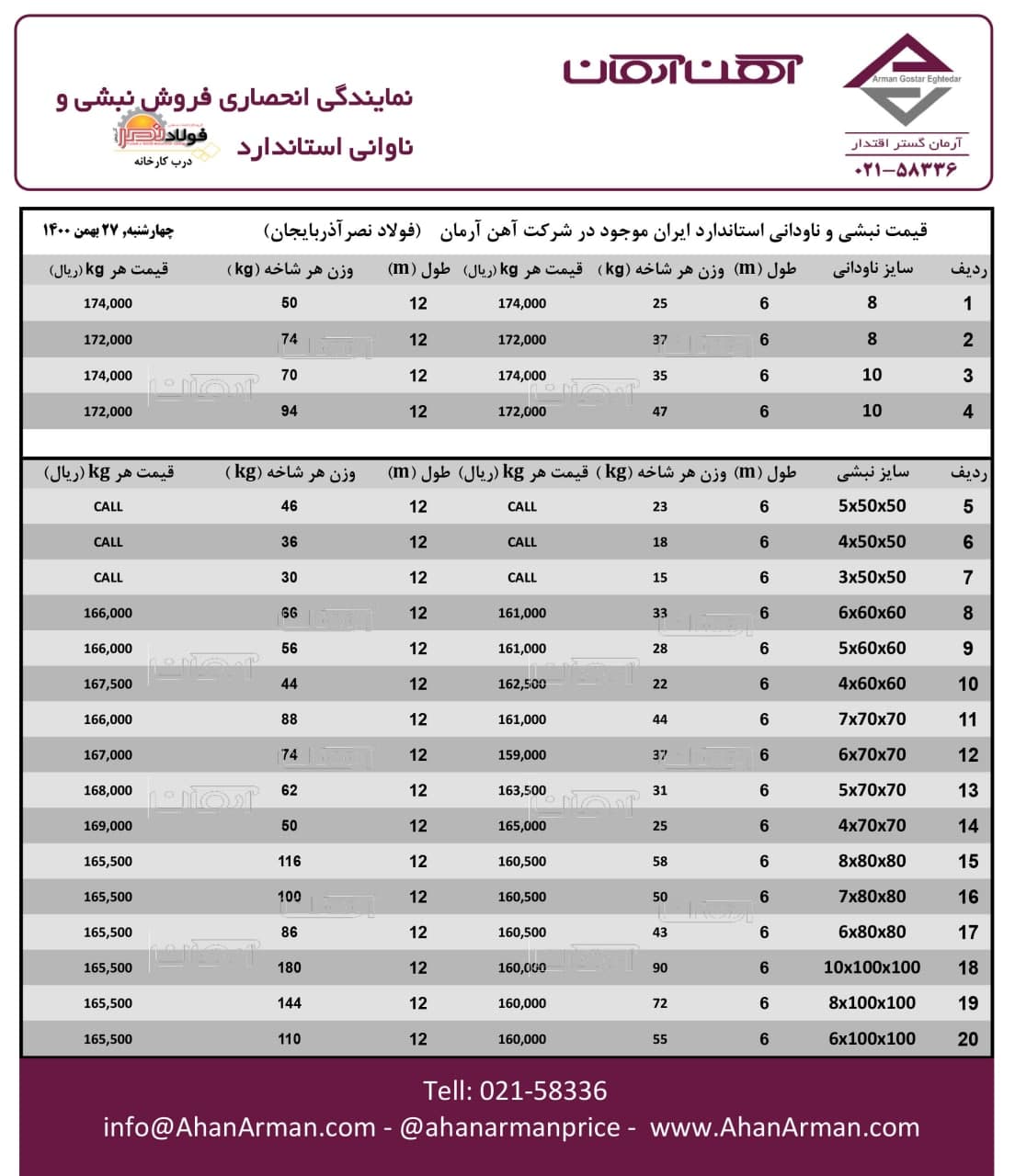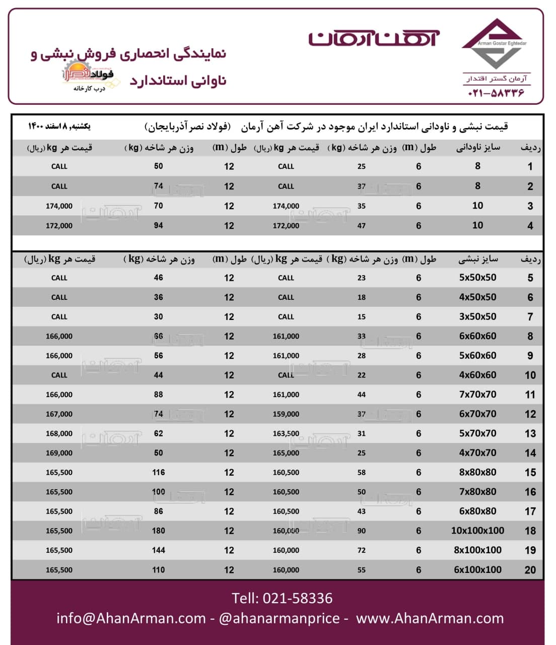 نبشی و ناودانی فولاد نصر ☎️۰۲۱-۵۸۳۳۶ 🌐www.ahanarman.com 🆔 @ahanarmanprice https://t.me/AhanArmanPrice