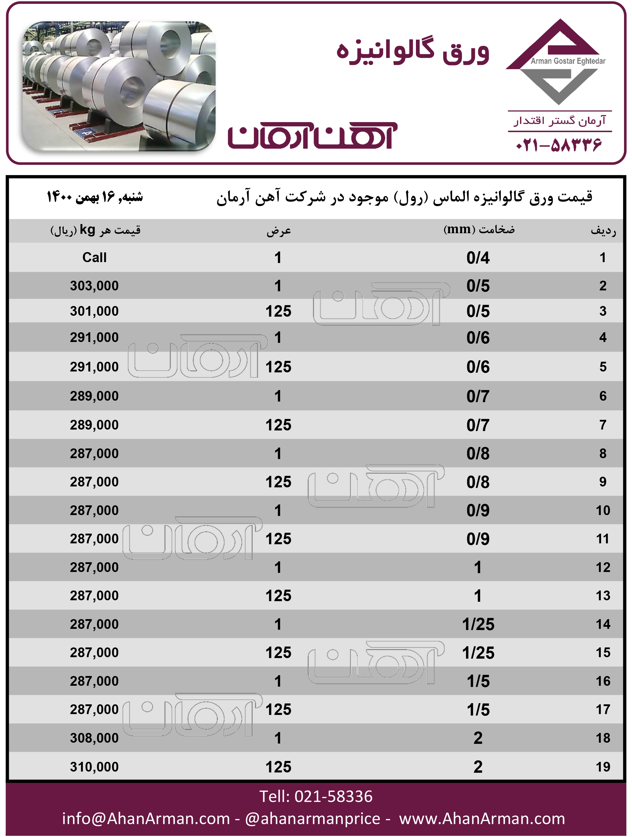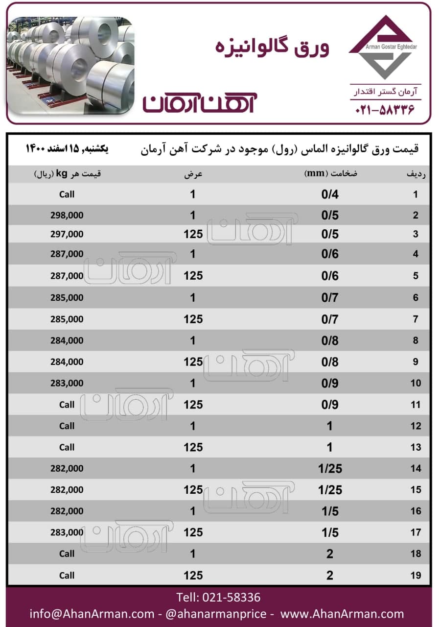 ورق گالوانیزه ☎️۰۲۱-۵۸۳۳۶ 🌐www.ahanarman.com 🆔 @ahanarmanprice https://t.me/AhanArmanPrice