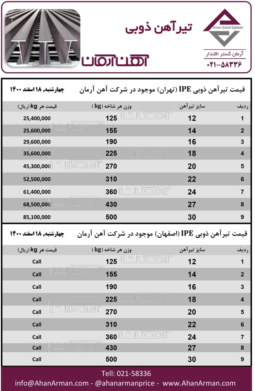 تیرآهن ذوبی ☎️021-58336 🌐www.ahanarman.com 🆔 @ahanarmanprice https://t.me/AhanArmanPrice